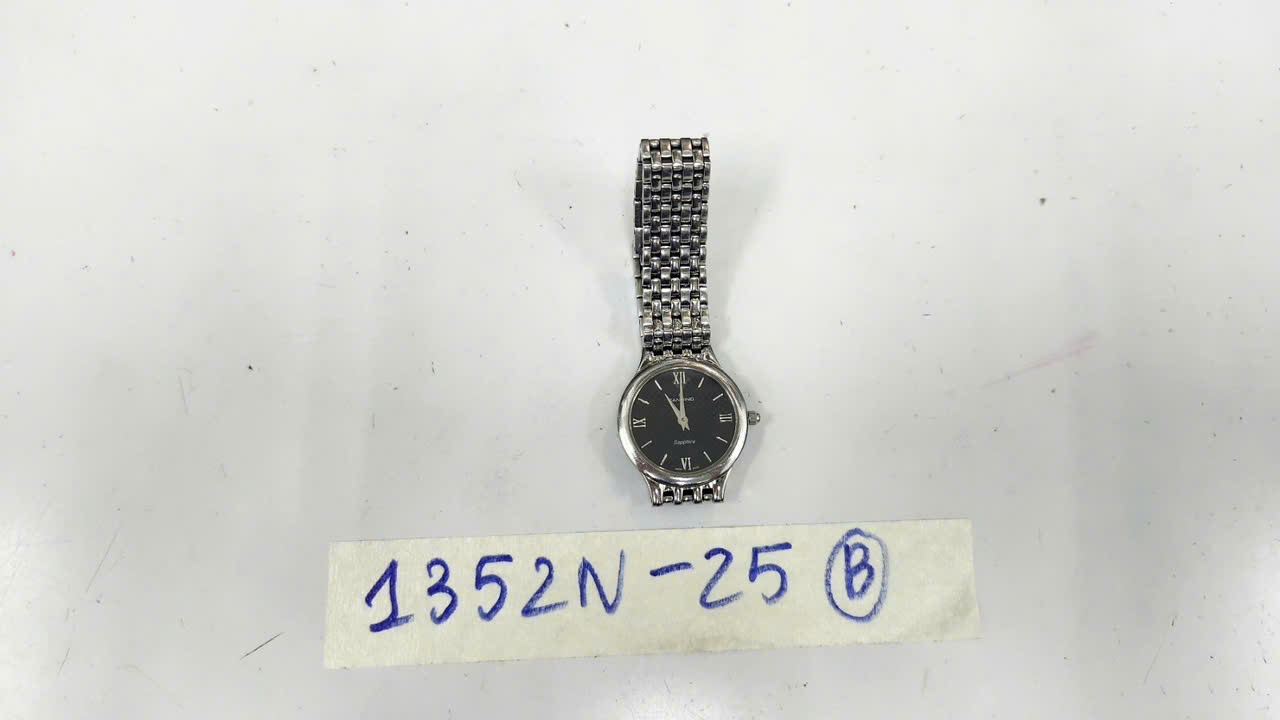 Ngày tiếp nhận: 24/7/2025 Mã hồ sơ: 1352N2025B Mô tả: 01 đồng hồ dây kim loại màu trắng, mặt tròn màu đen có chữ CANDINO. |