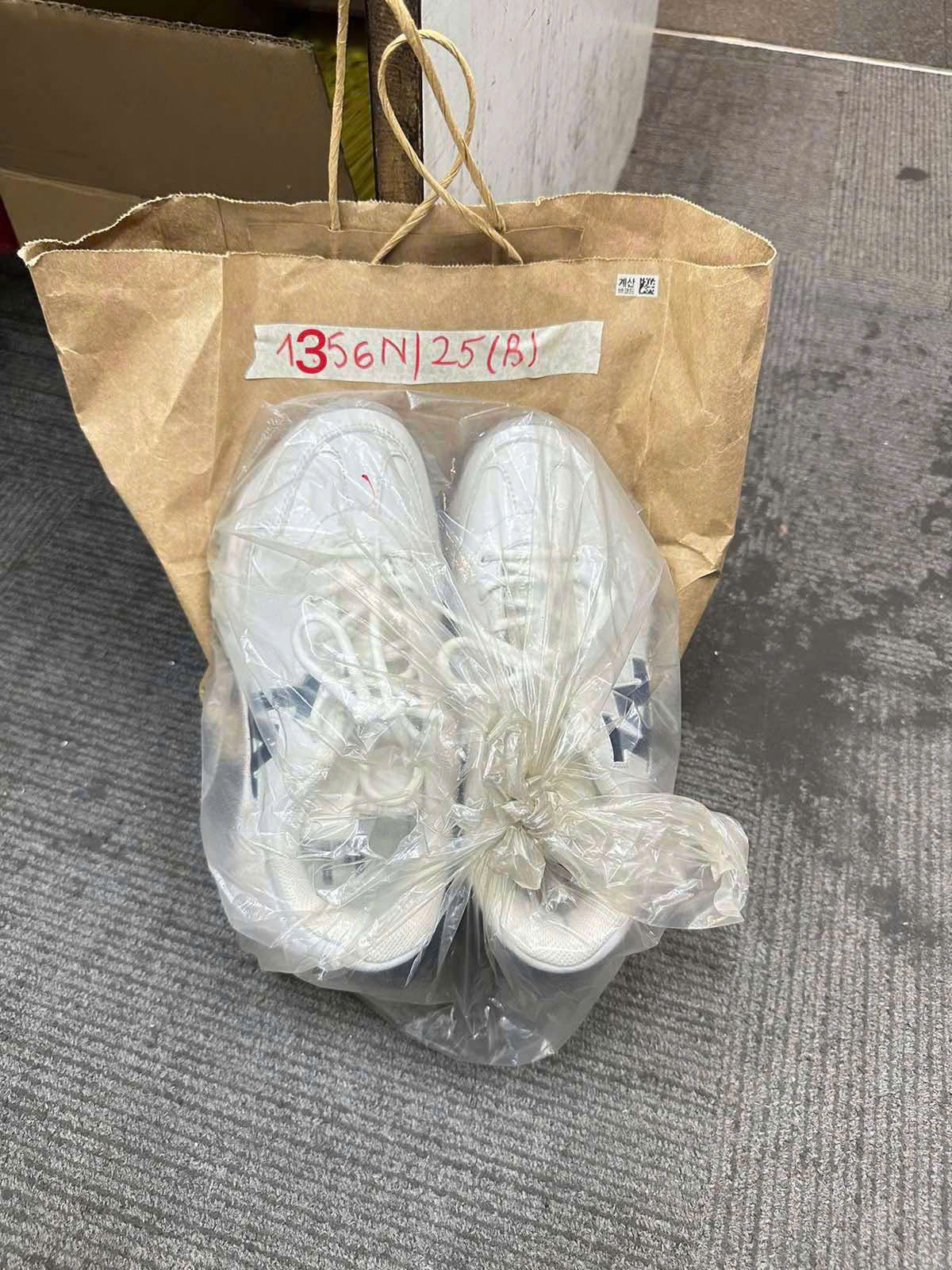 Ngày tiếp nhận: 25/7/2025 Mã hồ sơ: 1356N2025B Mô tả: 01 túi vải màu nâu Daiso bên trong: 01 đôi giày màu trắng nhãn hiệu DODGERS LA, 01 mũ mang nhãn hiệu GUCCI màu nâu, 01 mũ mang nhãn hiệu 1989 NEW YORK American màu nâu nhạt. |