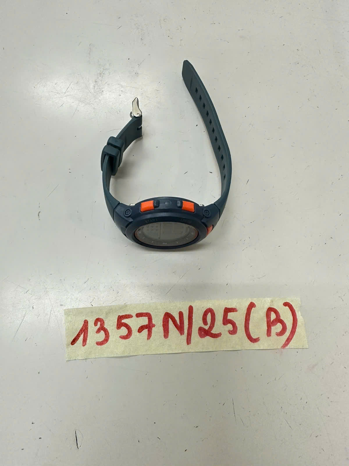 Ngày tiếp nhận: 25/7/2025 Mã hồ sơ: 1357N2025B Mô tả: 01 đồng hồ điện tử màu xanh có chữ BATTERY L1131F, dây đeo cao su màu xanh. |