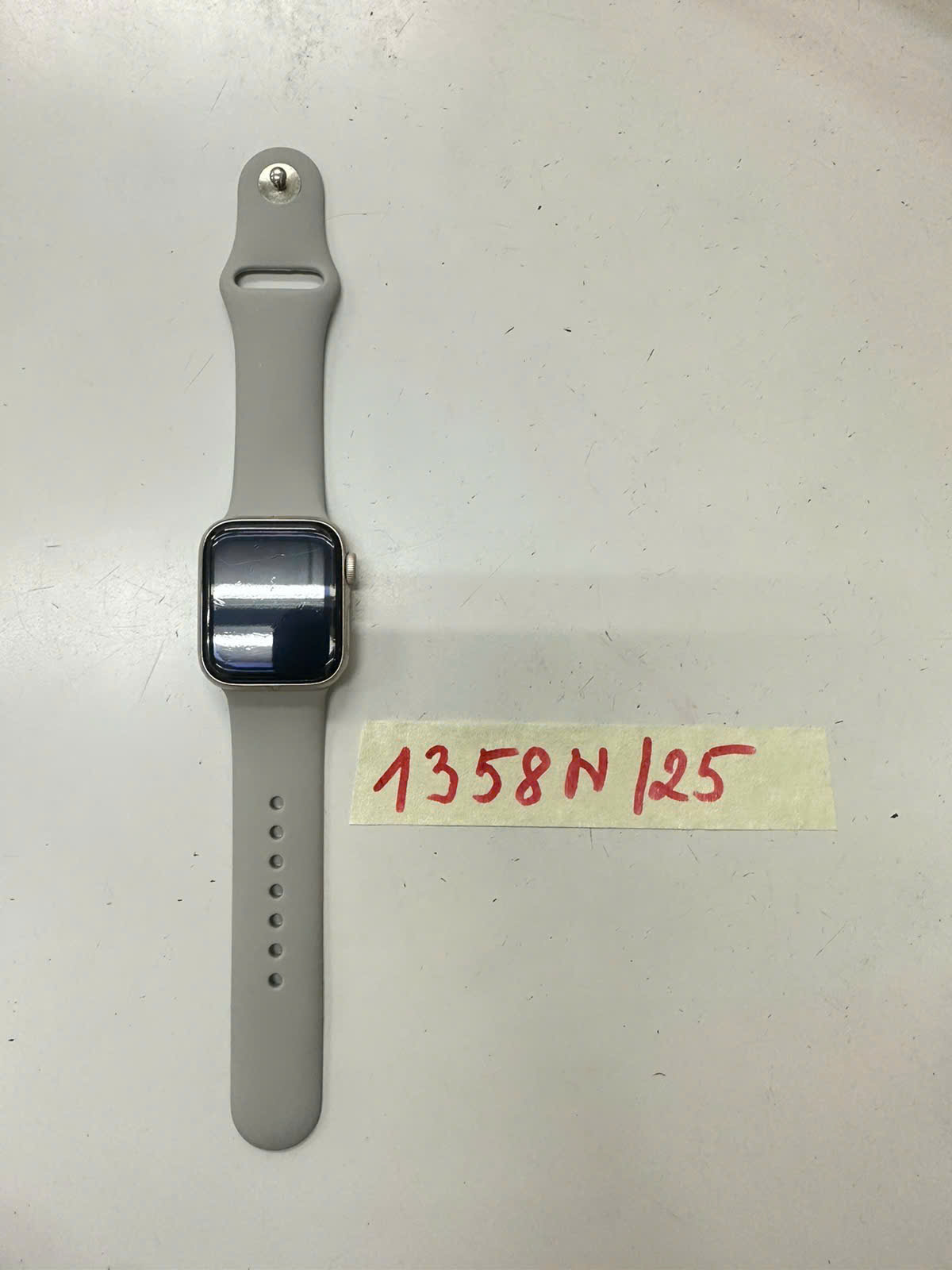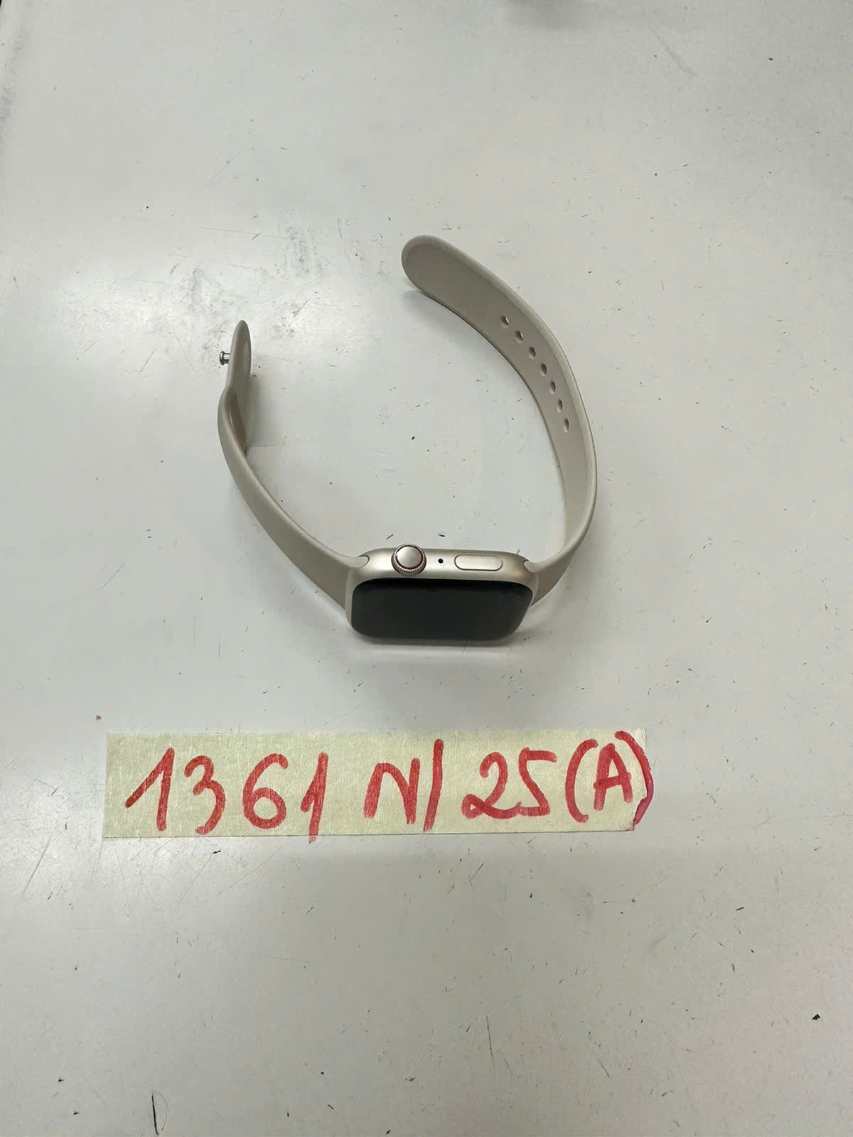Ngày tiếp nhận: 25/7/2025 Mã hồ sơ: 1361N2025A Mô tả: 01 đồng hồ thông minh màu bạc mang nhãn hiệu APPLE WATCH kèm theo 1 dây cao su màu trắng be. |