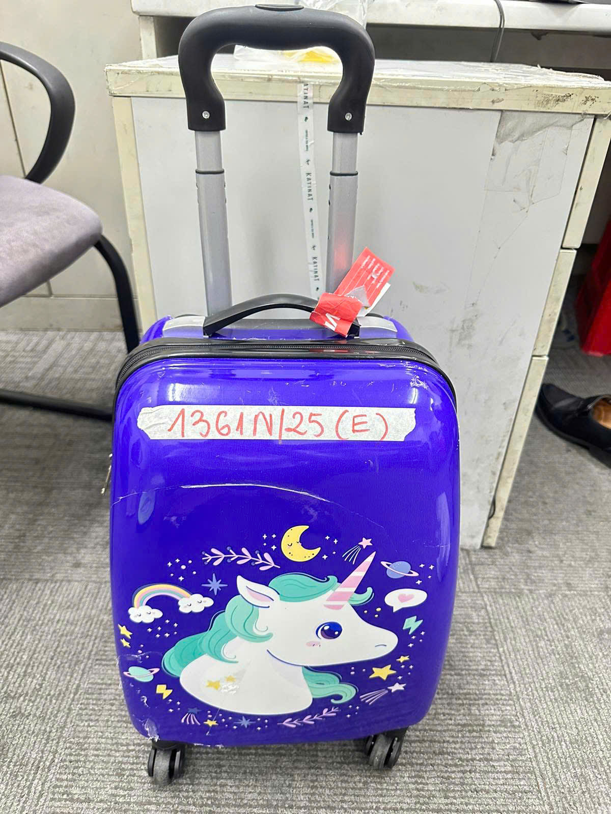 Ngày tiếp nhận: 25/7/2025 Mã hồ sơ: 1361N2025E Mô tả: 01 vali hình chữ nhật màu tím có tag VIETJETAIR bên trong: 01 số vật dụng và quần áo, đã sử dụng. |