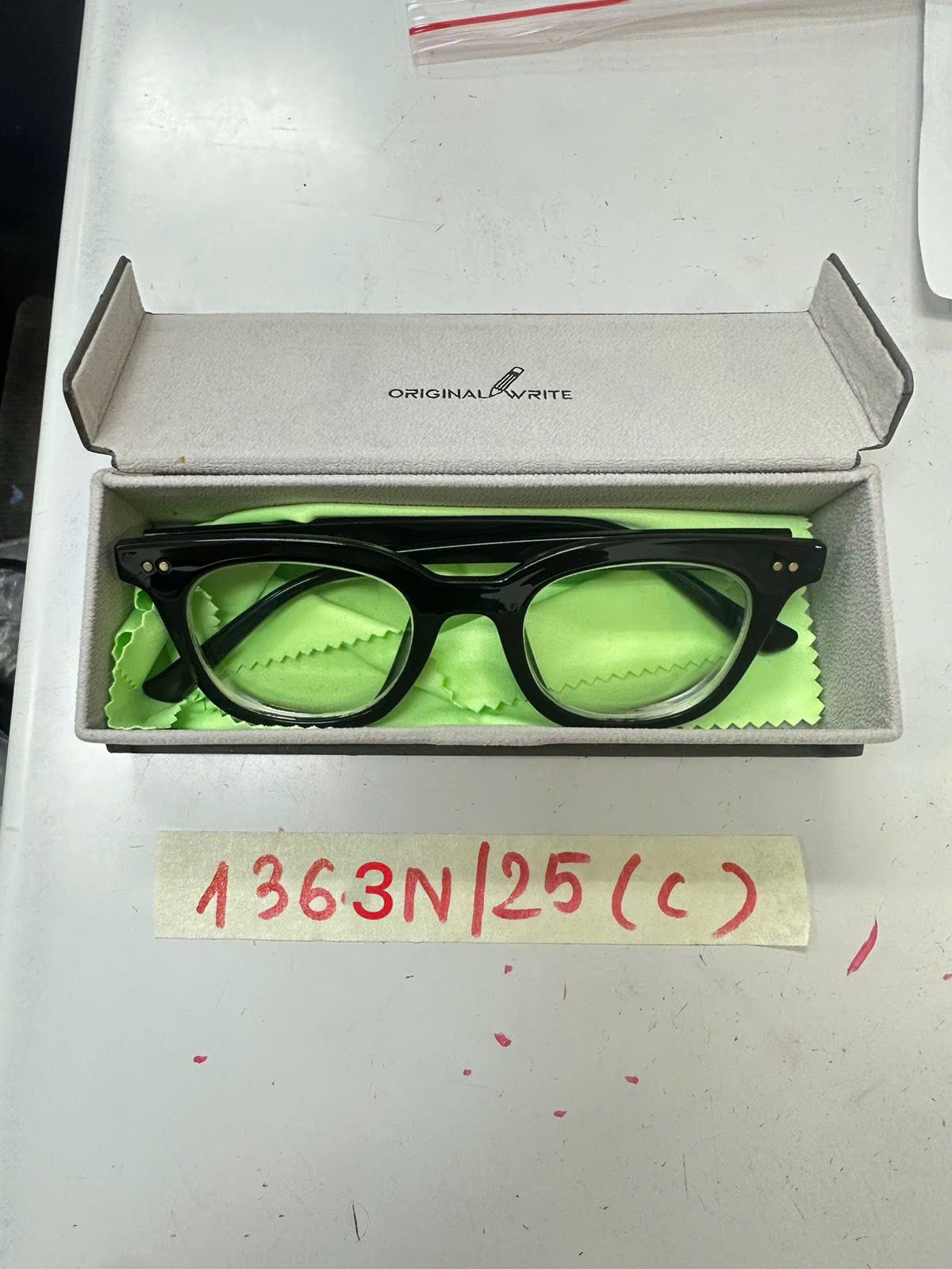 Ngày tiếp nhận: 25/7/2025 Mã hồ sơ: 1363N2025C Mô tả: 01 hộp mắt kính màu xám có chữ ORIGINAL WRITE bên trong: 01 kính cận màu đen. |