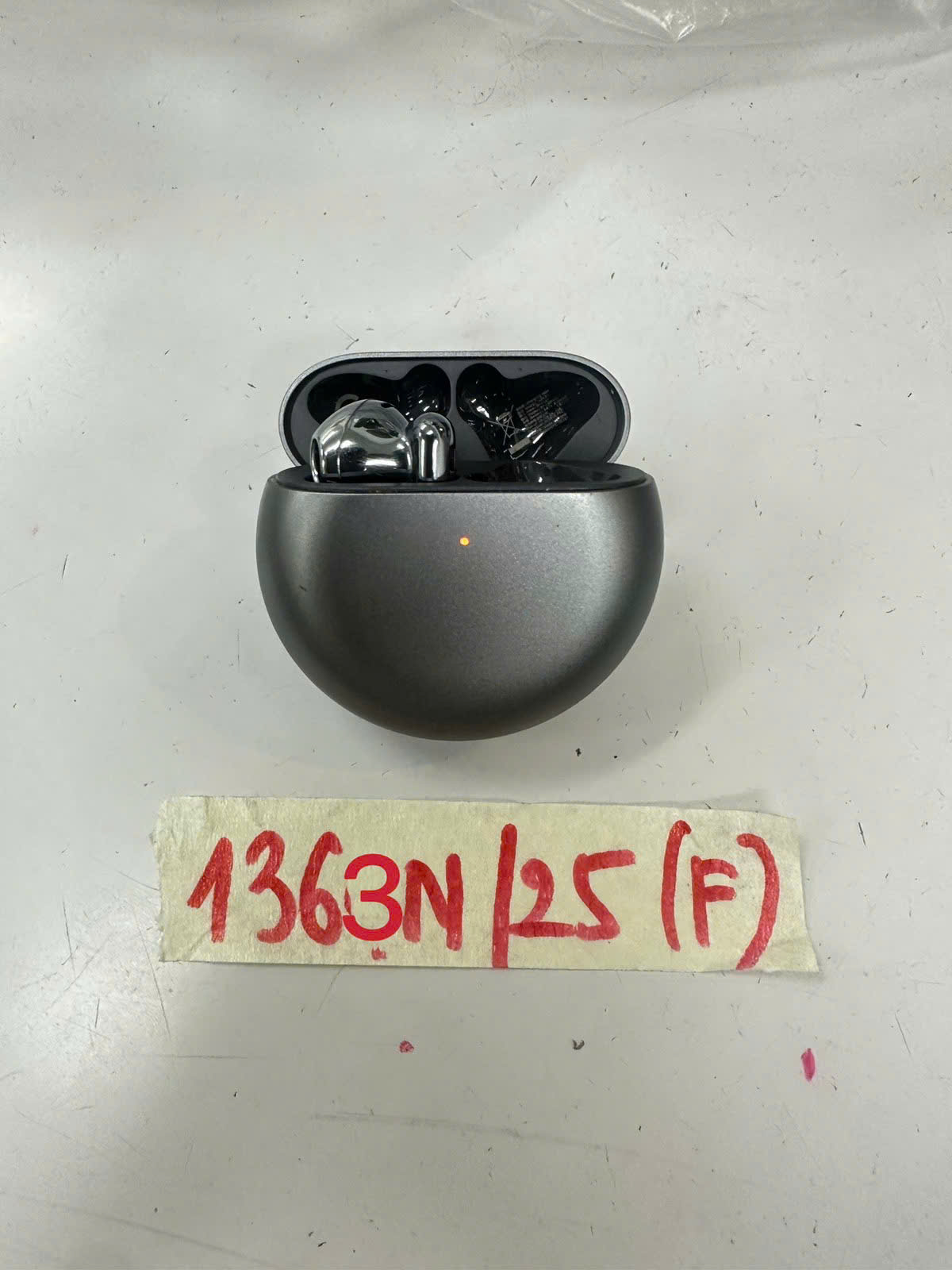 Ngày tiếp nhận: 25/7/2025 Mã hồ sơ: 1363N2025F Mô tả: 01 bộ tai nghe bluetooth màu xám có chữ HUAWEI. |