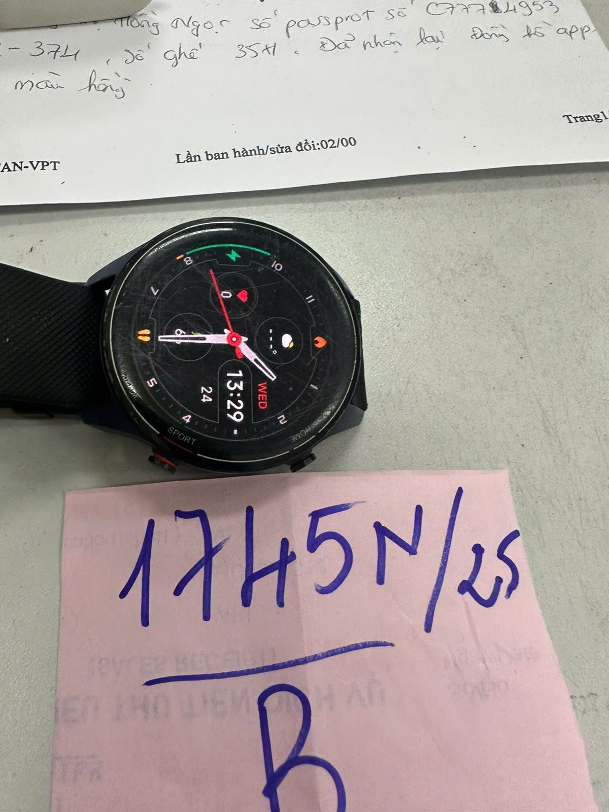 Ngày tiếp nhận: 24/9/2025 Mã hồ sơ: 1745N2025B Mô tả: 01 đồng hồ thông minh bằng kim loại mặt tròn màu đen, có chữ "MI", dây nhựa màu đen. |