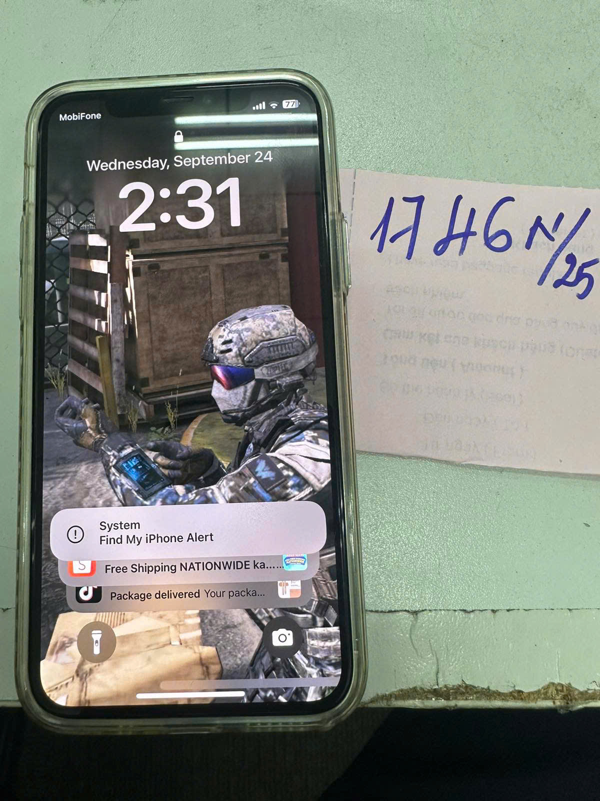Ngày tiếp nhận: 24/9/2025 Mã hồ sơ: 1746N2025 Mô tả: 01 điện thoại Iphone màu xám, bên ngoài có ốp nhựa màu trắng. |