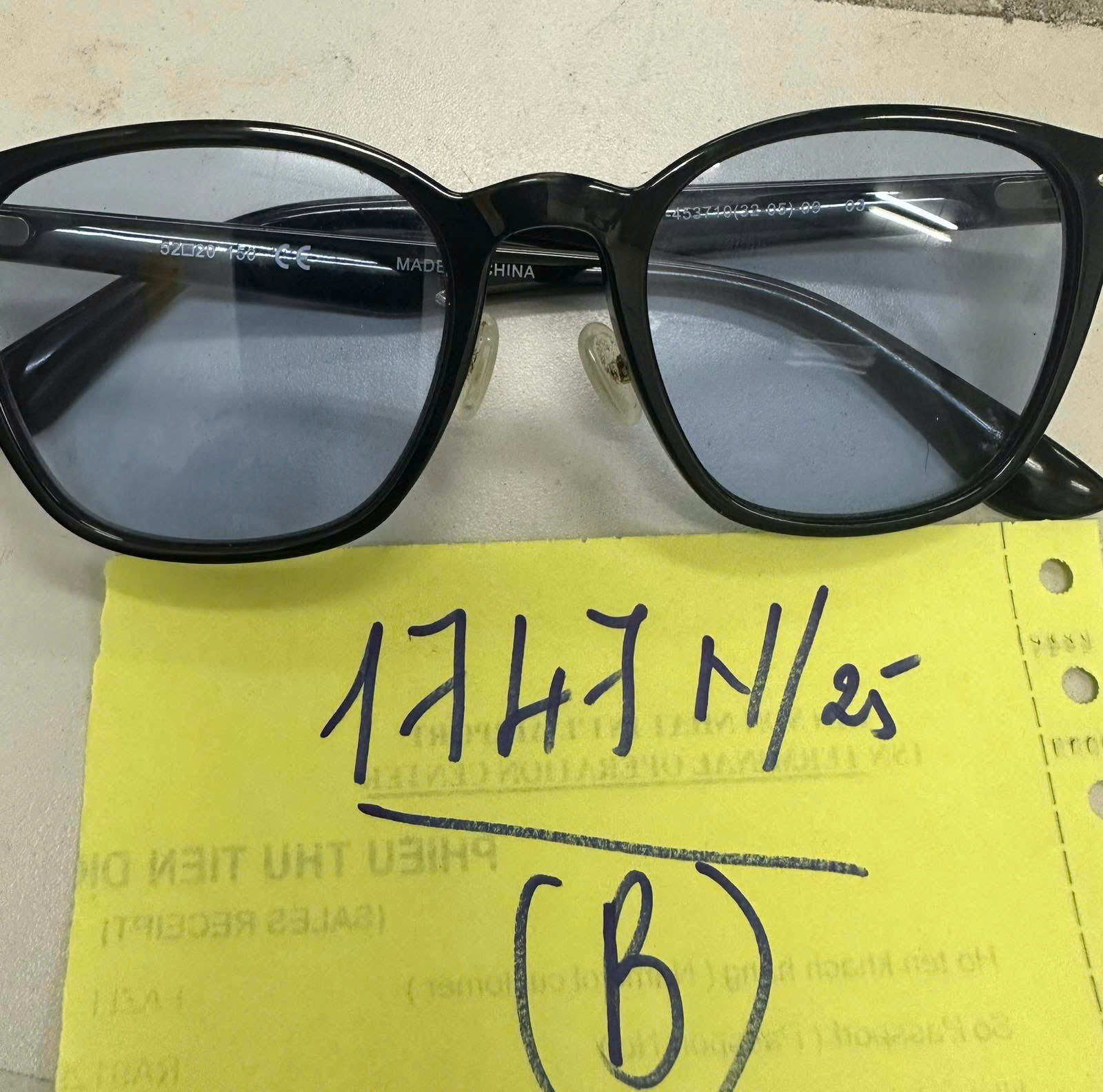 Ngày tiếp nhận: 24/9/2025 Mã hồ sơ: 1747N2025B Mô tả: 01 mắt kính gọng đen tròng xanh dương có in dòng chữ Made in China. |