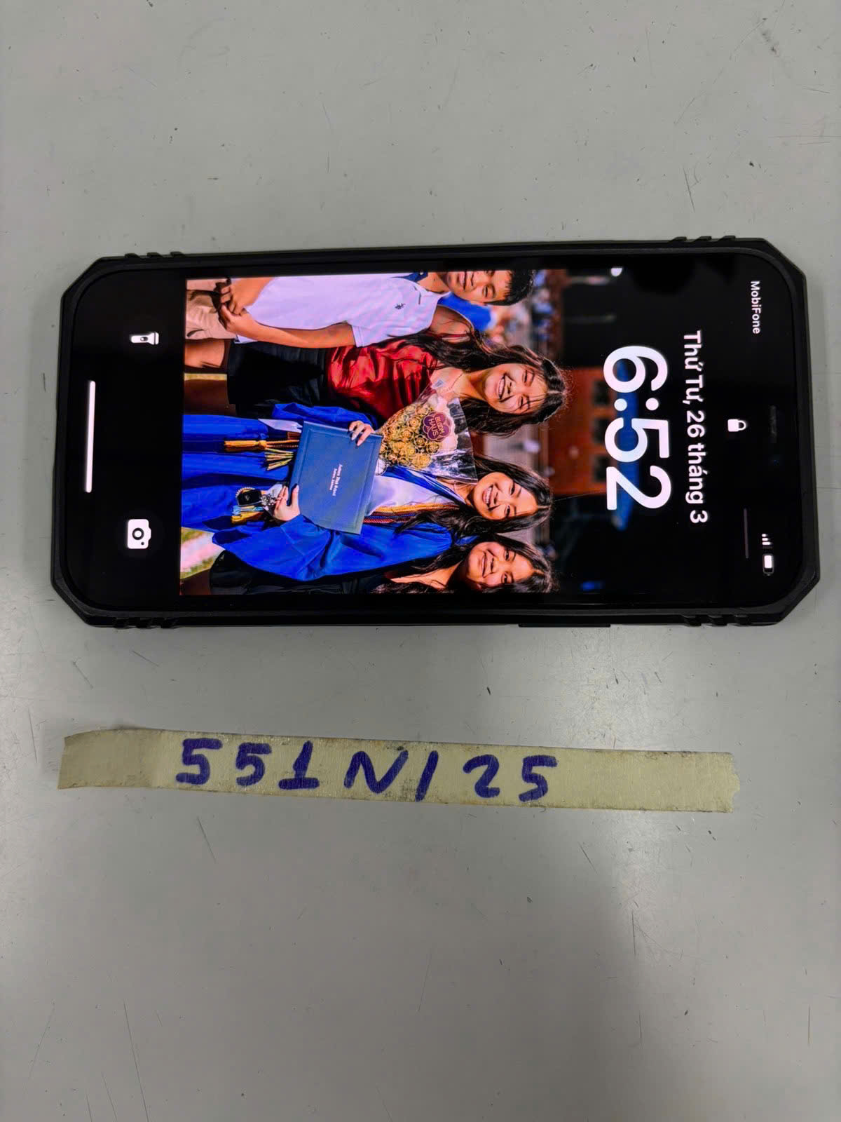 Ngày tiếp nhận: 25/03/2025 Mã hồ sơ: 549N2025 Mô tả: 01 điện thoại màu đen Iphone có khóa. |