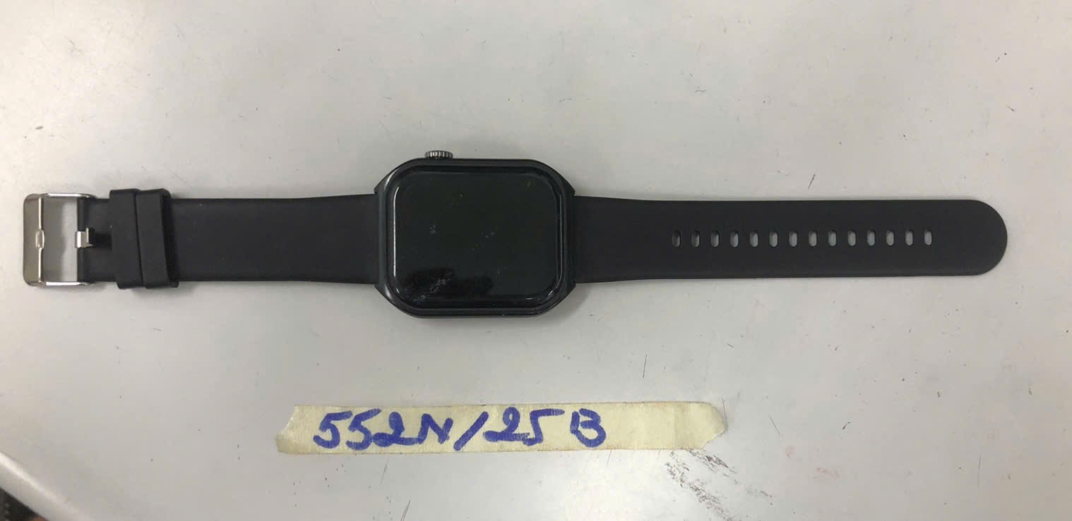 Ngày tiếp nhận: 26/03/2025 Mã hồ sơ: 552N2025B Mô tả: 01 đồng hồ thông minh, mặt đồng hồ hình chữ nhật màu đen, dây cao su màu đen. |