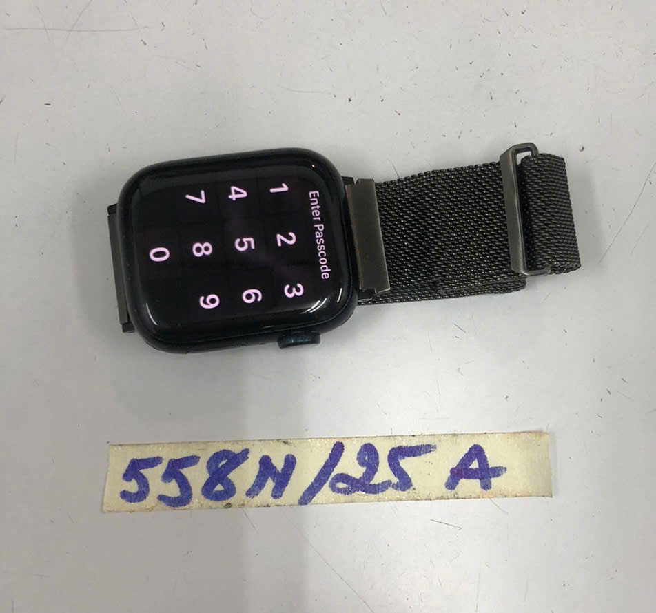 Ngày tiếp nhận: 26/03/2025 Mã hồ sơ: 558N2025A Mô tả: 01 đồng hồ điện tử thông minh màu đen, mặt sau có chữ "Series 8" dây kim loại màu đen. |