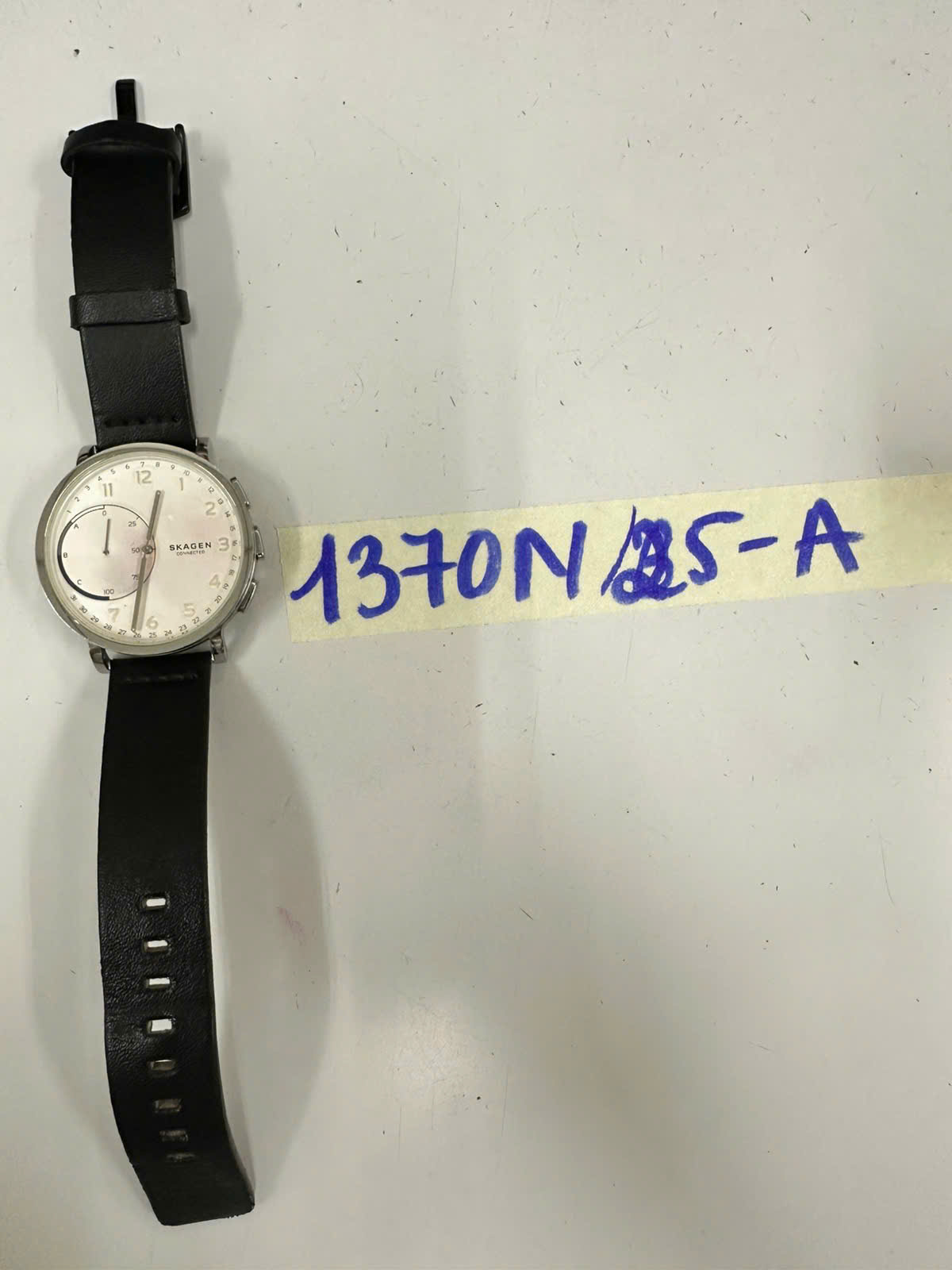 Ngày tiếp nhận: 26/7/2025 Mã hồ sơ: 1370N2025A Mô tả: 01 Đồng hồ đeo tay mặt màu trắng có dòng chữ Skagen, dây bằng nhựa màu đen đã qua sử dụng. |