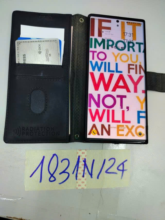 Ngày tiếp nhận: 27/10/2024 Mã hồ sơ: 1831N2024 Mô tả: 01 Điện thoại di động màu đỏ có bao da màu đen có chứa: số tiền 62 đô la Singapore, hai thẻ ngân hàng mang tên TAN TJIEN. |