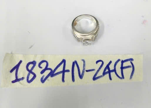 Ngày tiếp nhận: 27/10/2024 Mã hồ sơ: 1834N2024F Mô tả: 01 nhẫn kim loại có đính một viên đá, có ghi chữ Ngọc Giang. |
