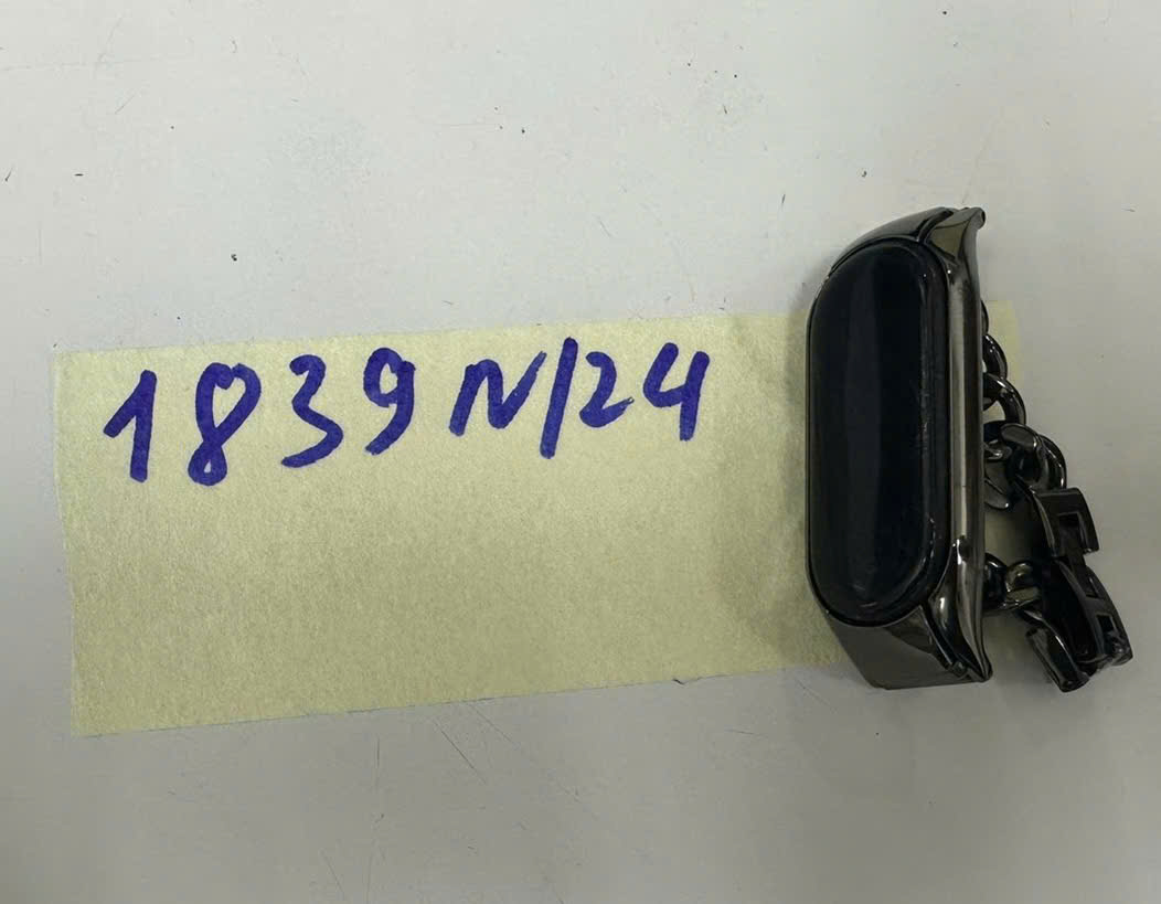 Ngày tiếp nhận: 28/10/2024 Mã hồ sơ: 1839N2024 Mô tả: 01 đồng hồ thông minh có logo chữ "MI" màu đen, dây kim loại màu đen. |