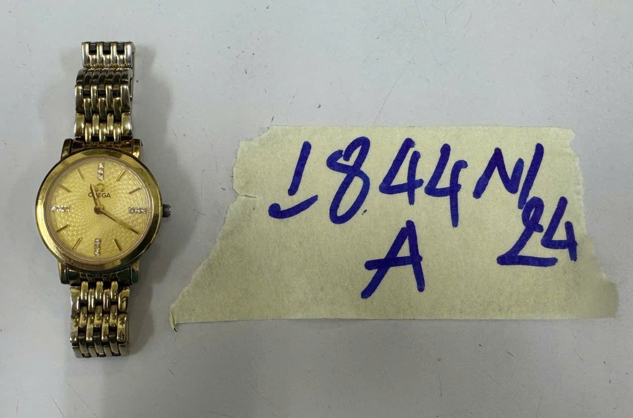 Ngày tiếp nhận: 28/10/2024 Mã hồ sơ: 1844N2024A Mô tả: 01 đồng hồ màu vàng có chữ OMEGA. |