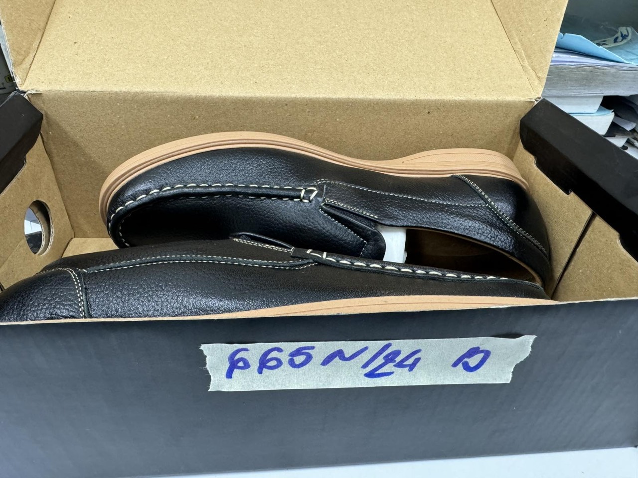 Ngày tiếp nhận: 27/4/2024 JAPAN bên trong có 01 đôi giày bằng da màu đen đế màu nâu. Vị trí: An ninh soi chiếu quốc nội |