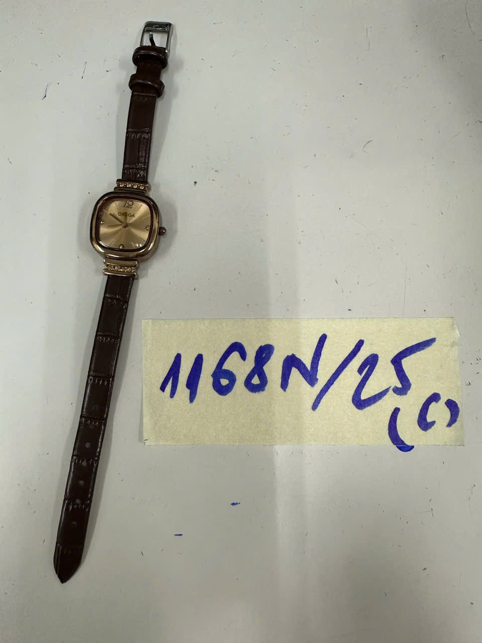 Ngày tiếp nhận: 27/6/2025 Mã hồ sơ: 1168N2025C Mô tả: 01 đồng hồ ORSGA mặt hình vuông, dây da màu nâu. |