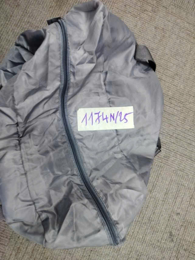 Ngày tiếp nhận: 28/6/2025 Mã hồ sơ: 1174N2025 Mô tả: 01 túi xách tay bàng vải màu xám bên trong gồm: 01 túi xách đen bằng vải đã sd, 01 bìa nhựa màu xanh có chữ Lebara, 02 hộp nhựa màu đỏ và xanh, 01 bịch bánh có chữ nước ngoài, vài giấy tờ cá nhân. |