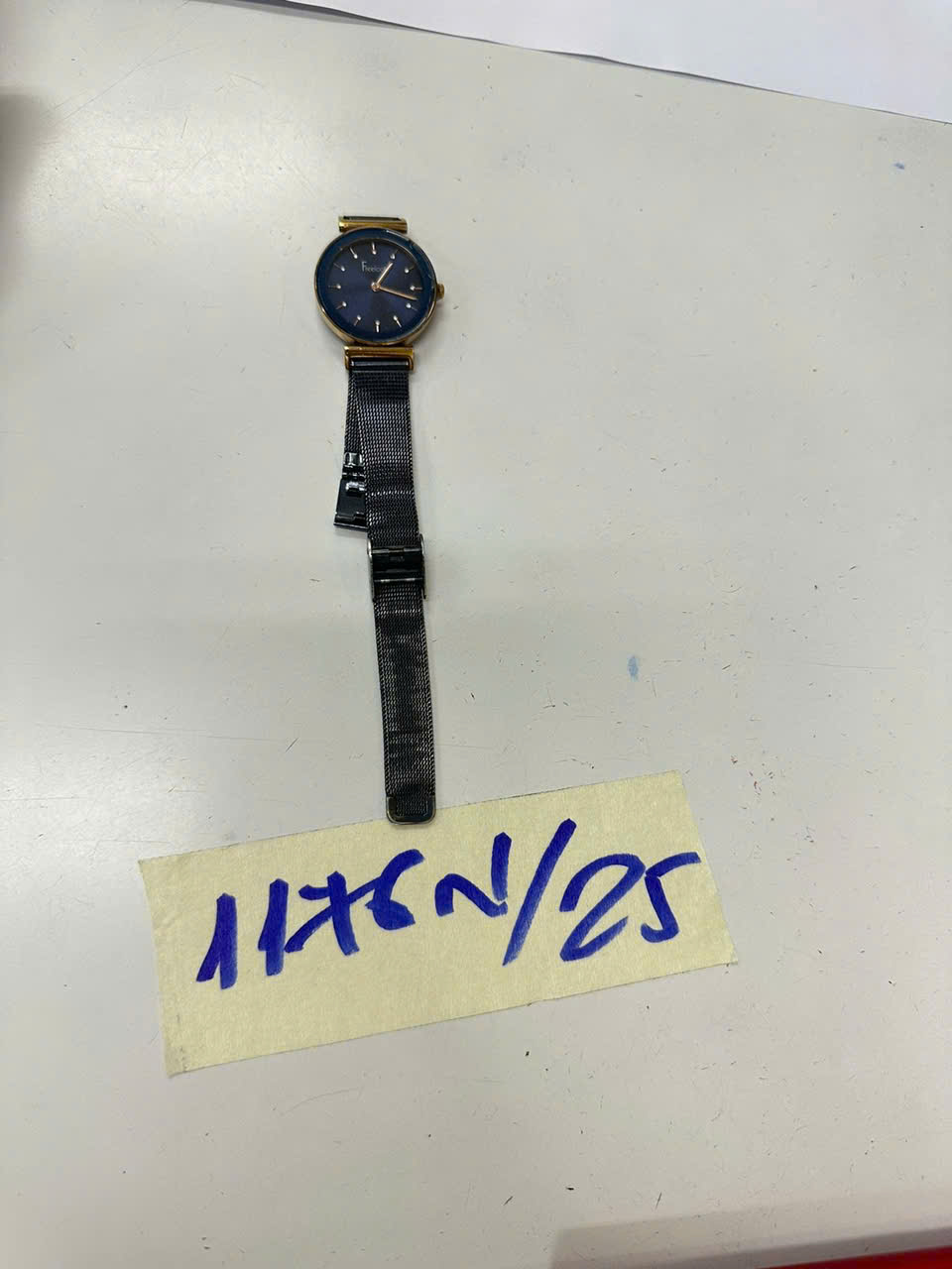 Ngày tiếp nhận: 29/6/2025 Mã hồ sơ: 1176N2025 Mô tả: 01 đồng hồ kim loại mặt tròn có chữ Freelook, dây kim loại màu đen. |
