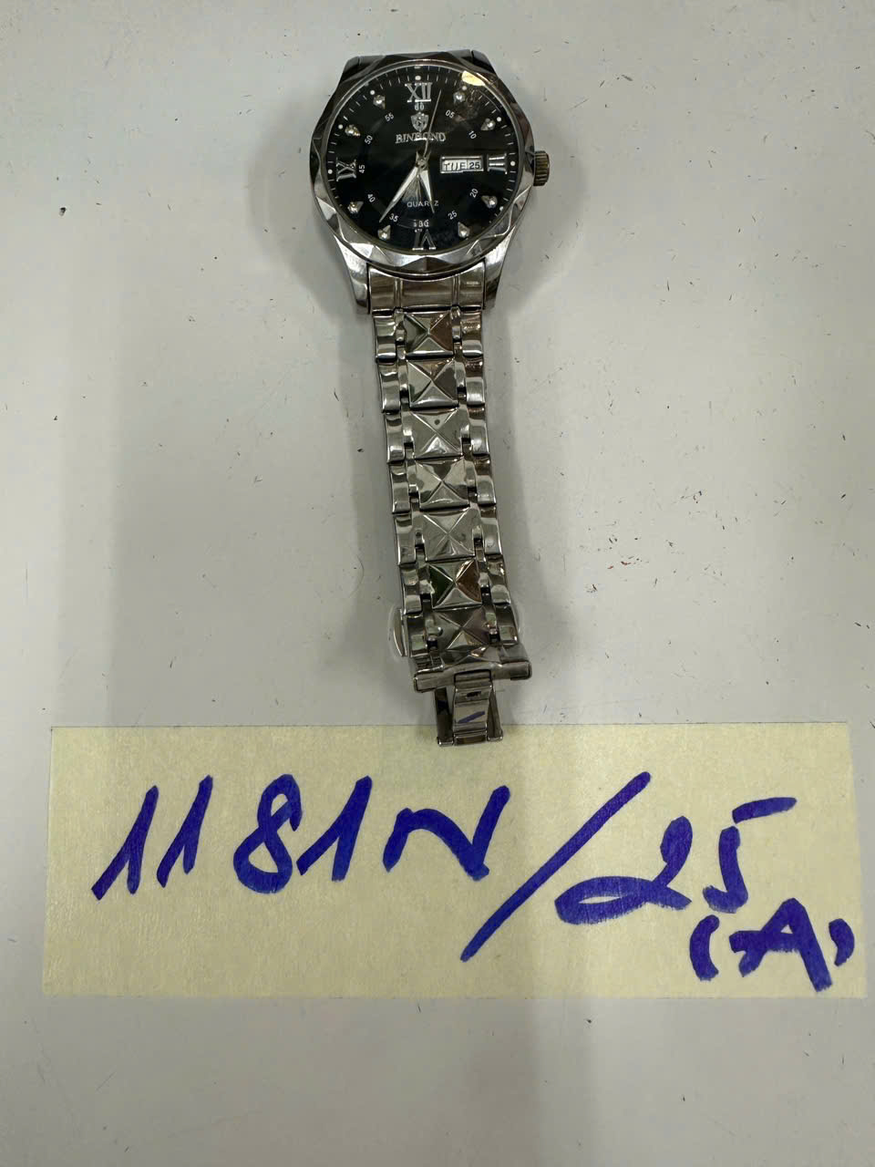 Ngày tiếp nhận: 30/6/2025 Mã hồ sơ: 1181N2025A Mô tả: 01 đồng hồ mặt tròn màu bạc, dây kim loại chữ BINBOND. |