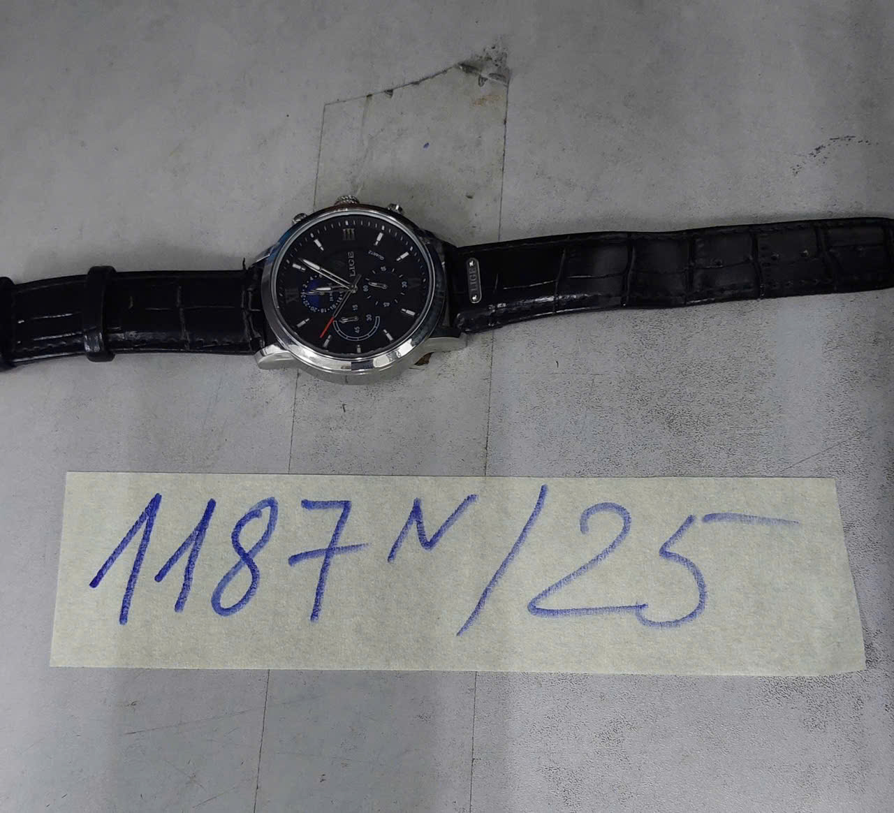 Ngày tiếp nhận: 01/7/2025 Mã hồ sơ: 1187N2025 Mô tả: 01 đồng hồ LIGE bằng kim loại dây da màu đen. |