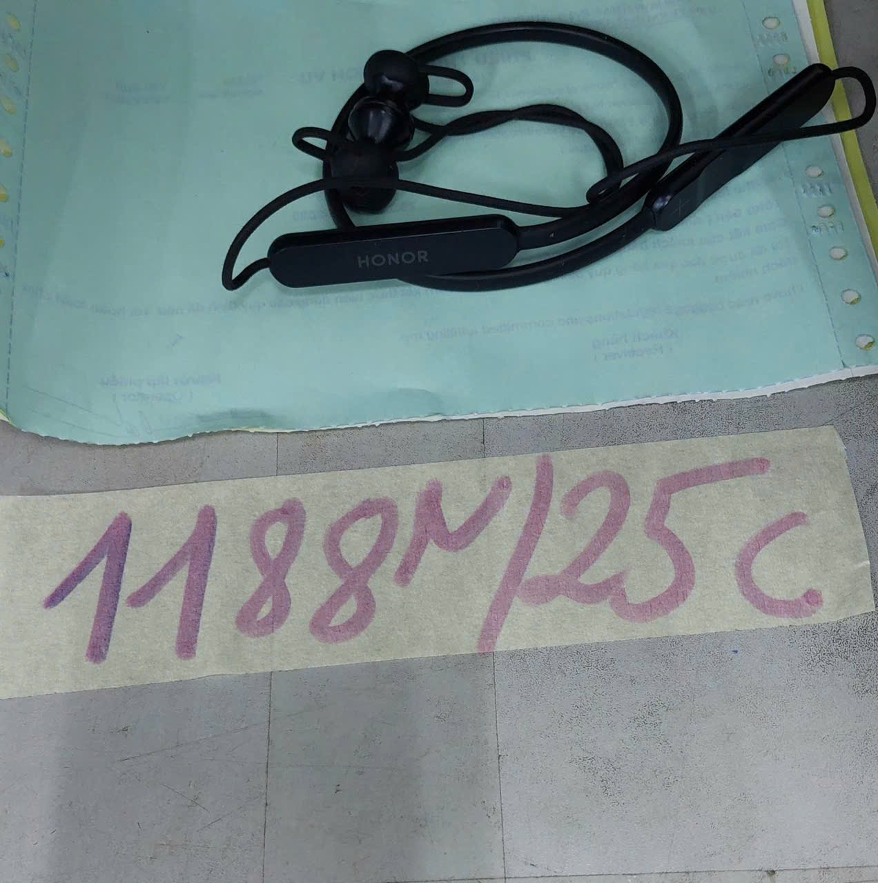 Ngày tiếp nhận: 01/7/2025 Mã hồ sơ: 1188N2025C Mô tả: 01 Tai nghe không dây màu đen có logo chữ HONOR. |