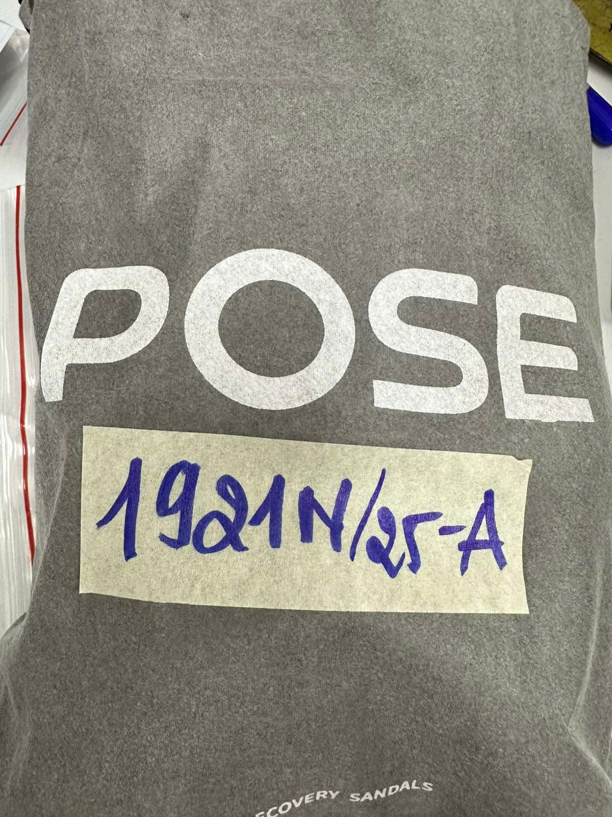 Ngày tiếp nhận: 29/10/2025 Mã hồ sơ: 1921N2025A Mô tả: 01 túi dựng giày dép màu xám có chữ POSE, bên trong có đôi dép nhựa. |