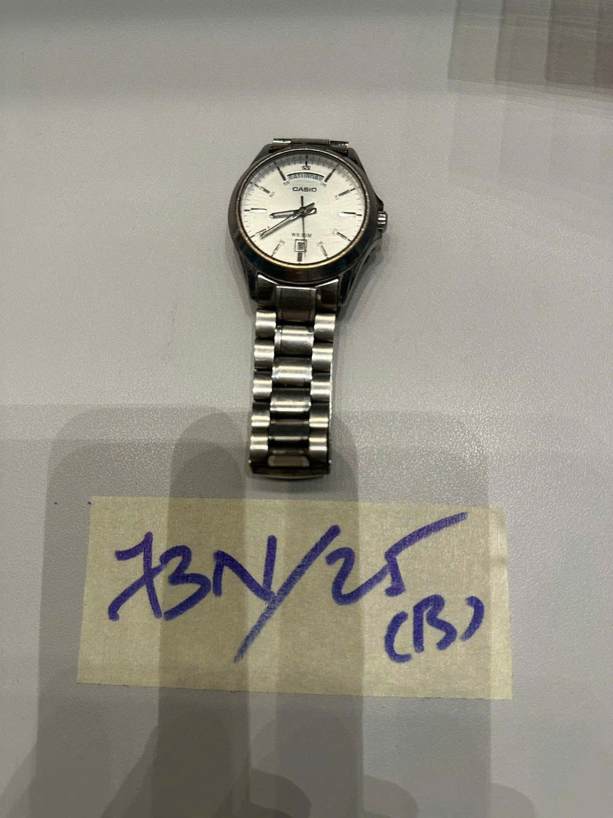Ngày tiếp nhận: 28/10/2025 Mã hồ sơ: 73N2025B Mô tả: 01 đồng hồ kim loại màu bạc, mặt tròn có chữ CASIO. |