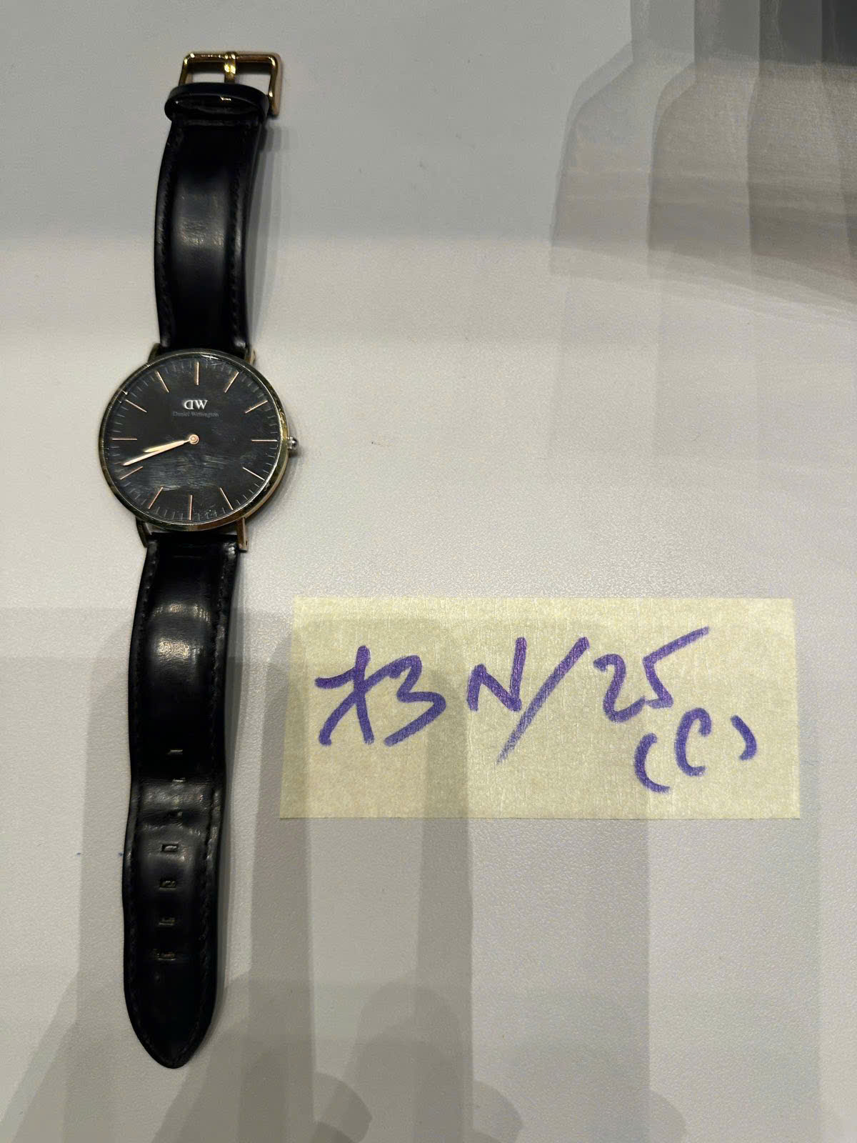 Ngày tiếp nhận: 28/10/2025 Mã hồ sơ: 73N2025C Mô tả: 01 đồng hồ cao su màu đen, mặt tròn viền vàng có chữ DANIEL WELLINGTON. |