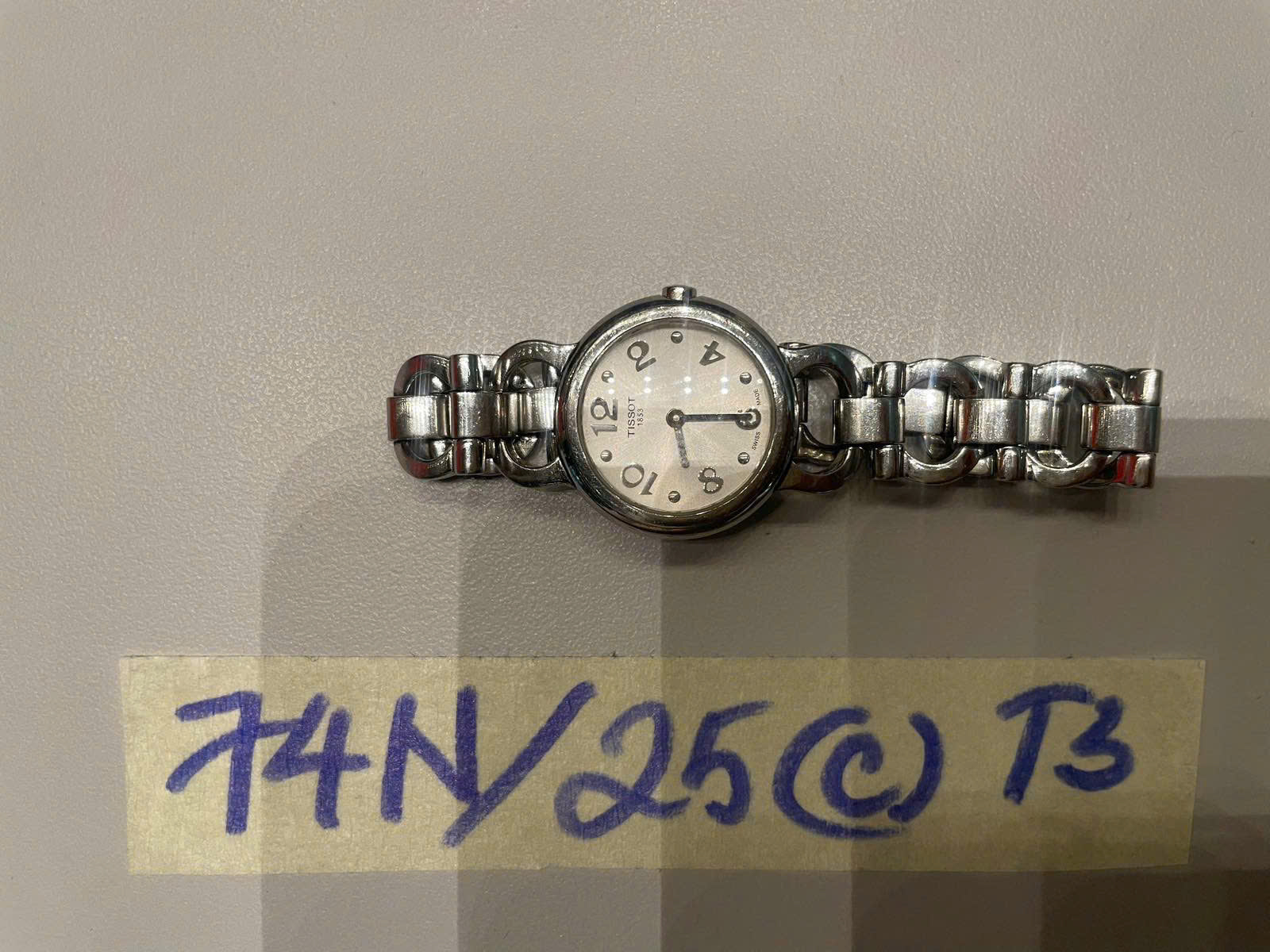 Ngày tiếp nhận: 28/10/2025 Mã hồ sơ: 74N2025C Mô tả: 01 đồng hồ màu trắng kim loại có chữ TISSOT. |