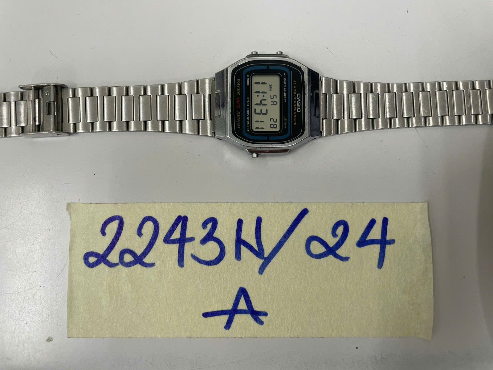 Ngày tiếp nhận: 28/12/2024 Mã hồ sơ: 2243N2024A Mô tả: 01 đồng hồ đeo tay bằng kim loại mặt hình vuông có chữ CASIO, mặt sau co chữ A158W, dây đeo bằng kim loại màu trắng. |