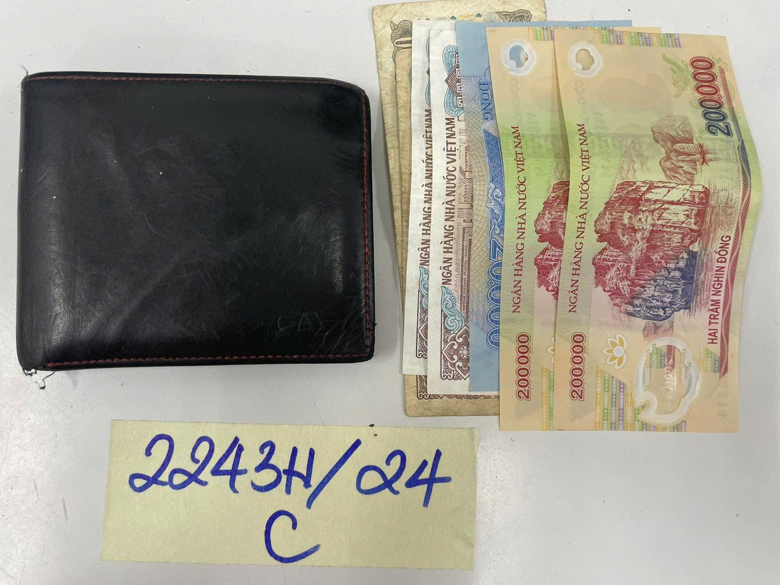Ngày tiếp nhận: 28/12/2024 Mã hồ sơ: 2243N2024C Mô tả: 01 ví tiền bằng da màu nâu bên trong có 03 (ba) thẻ có tên KAZUO YAMAZAKI và 427.000 VNĐ ( bốn trăm hai mươi bảy nghìn việt nam đồng) tiền mặt. |
