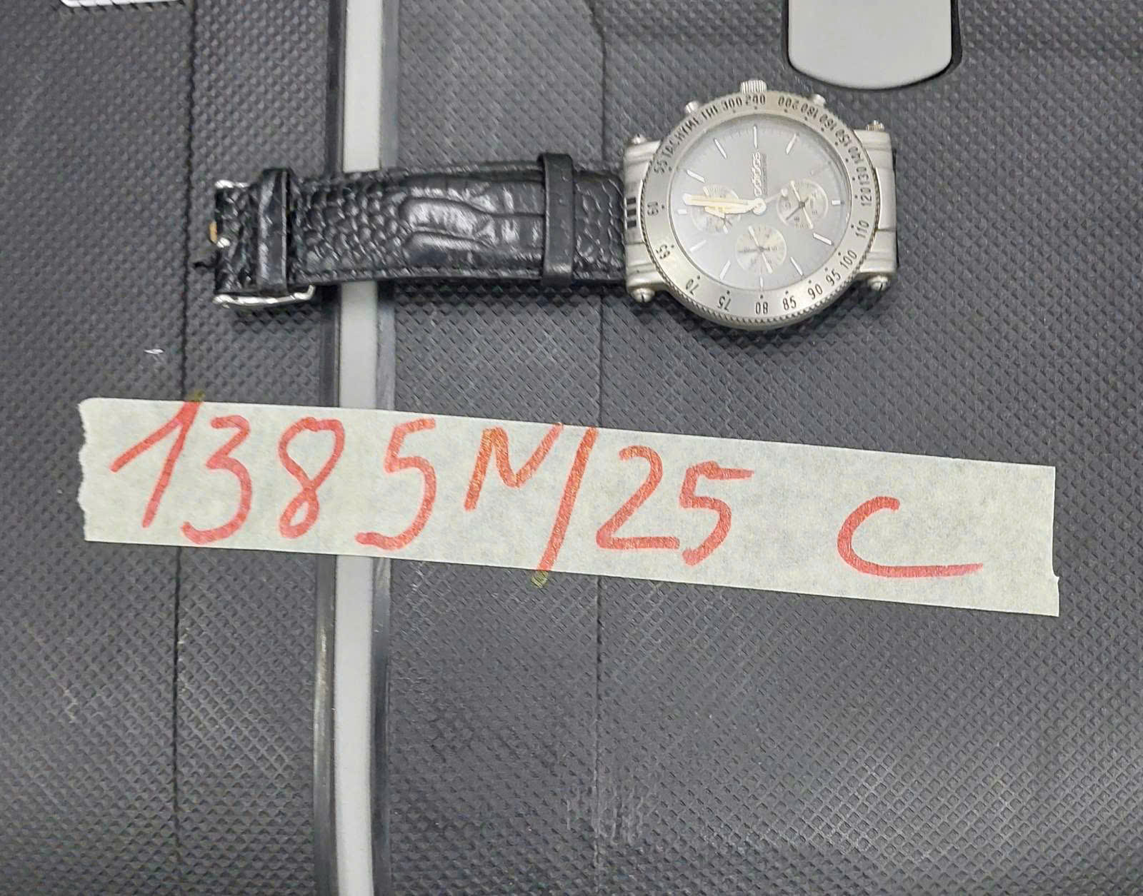 Ngày tiếp nhận: 28/7/2025 Mã hồ sơ: 1385N2025C Mô tả: 01 đồng hồ màu xám có chữ "Adidas", dây da màu đen. |