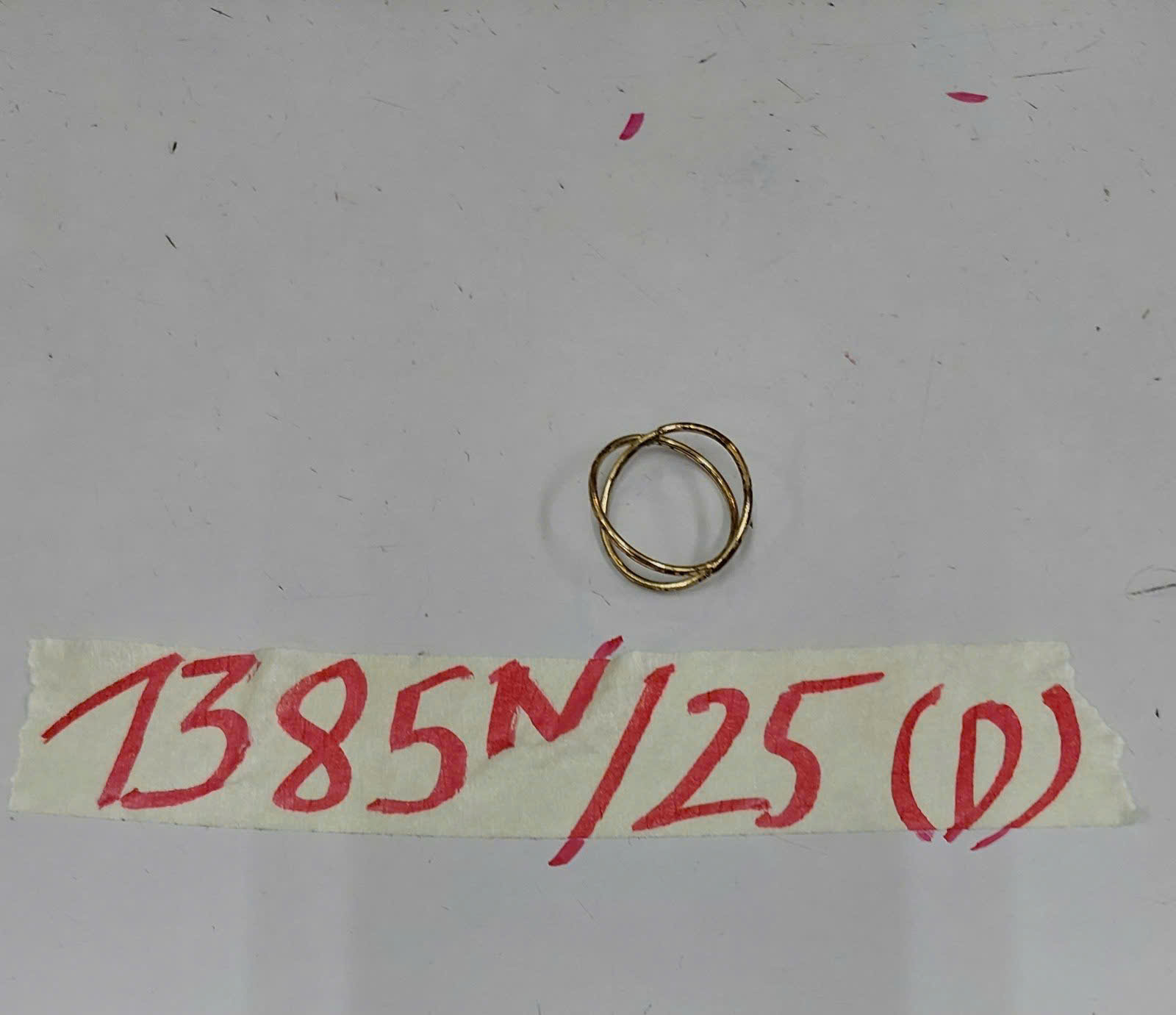 Ngày tiếp nhận: 28/7/2025 Mã hồ sơ: 1385N2025D Mô tả: 01 nhẫn màu vàng. |