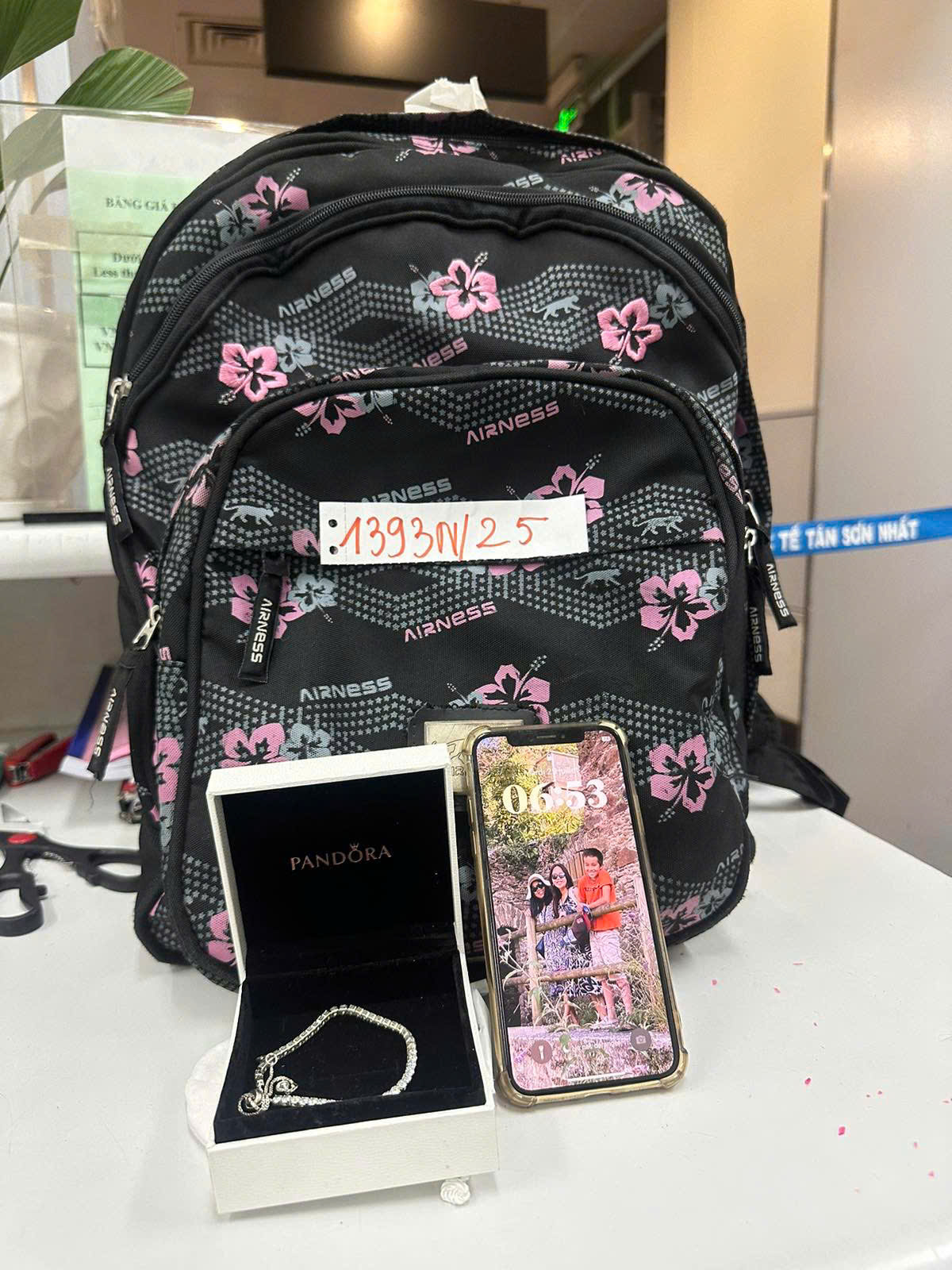 Ngày tiếp nhận: 29/7/2025 Mã hồ sơ: 1393N2025 Mô tả: 01 balo màu đen vải gồm: 01 điện thoại có logo "quả táo"; 01 vòng đeo tay kim loại nằm trong hộp màu hồng có chữ PANDORA; 02 dây sạc và cục sạc & nhiều đồ dùng cá nhân đã qua sử dụng. |