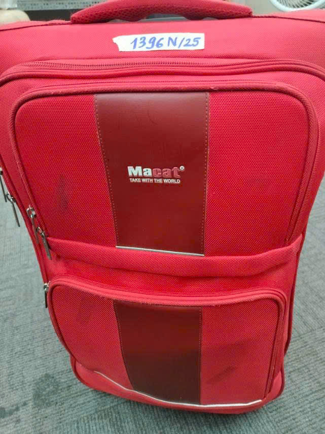 Ngày tiếp nhận: 29/7/2025 Mã hồ sơ: 1396N2025 Mô tả: 01 vali màu vải màu đỏ bên trong gồm quần áo và đồ dùng cá nhân đã qua sử dụng. |