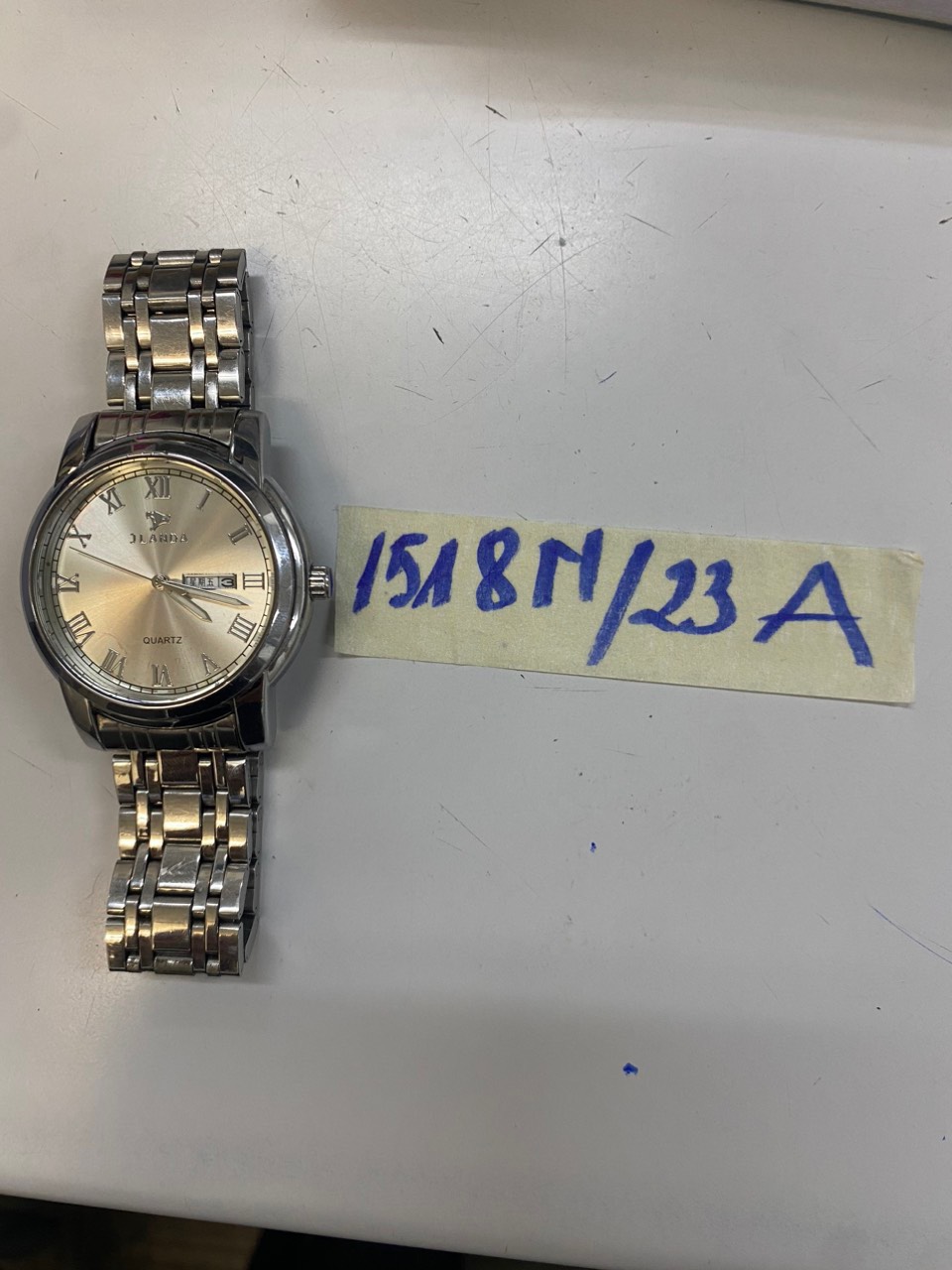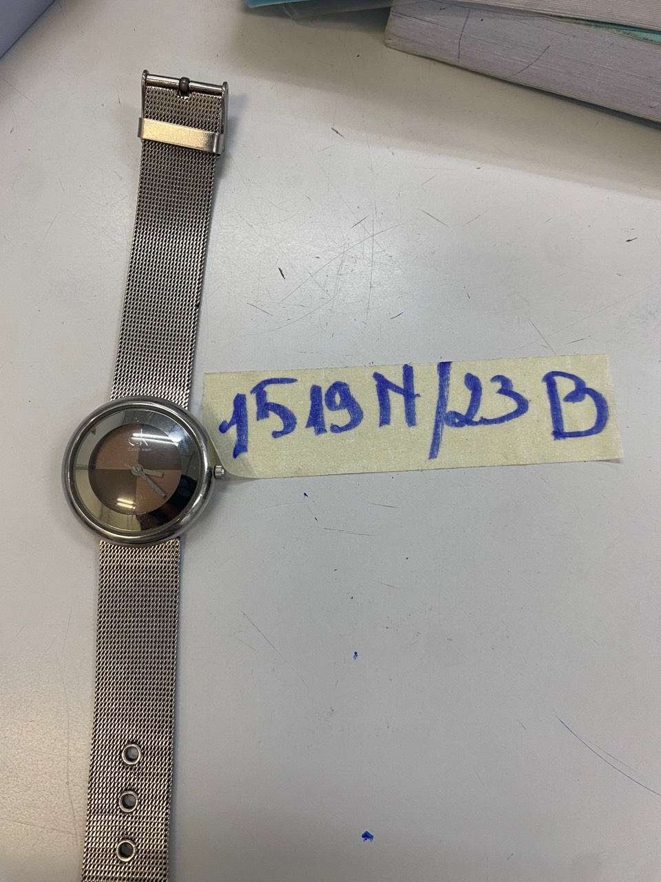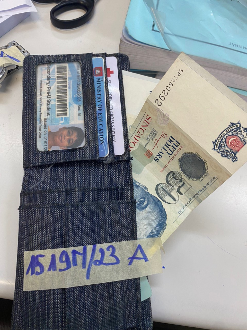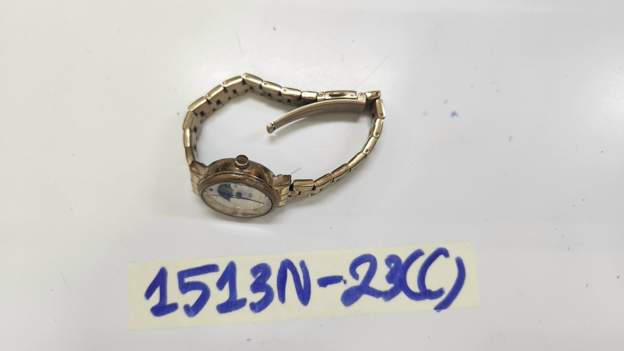 Ngày tiếp nhận: 31/10/2023 Mã hồ sơ: 1524N2023B Mô tả: 01 hộp giấy "BJBABUD" có 01 đôi giày trẻ em màu trắng có chữ "ARL", 01 đồng hồ dây kim loại màu vàng "SUNRISE", 01 tờ 100.000VNĐ, 01 tờ 20.000VNĐ, 01 tờ 10.000VNĐ. Vị trí: An ninh soi chiếu quốc nội |