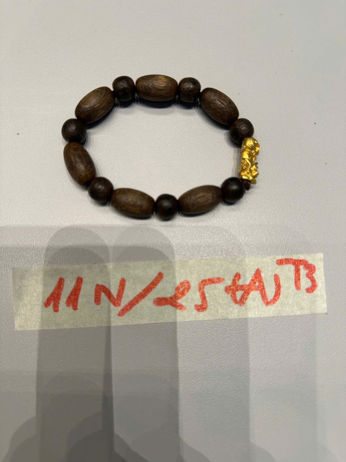 Ngày tiếp nhận: 29/8/2025 Mã hồ sơ: 11N2025A Mô tả: 01 hạt bằng gỗ có đính kim loại màu vàng. |