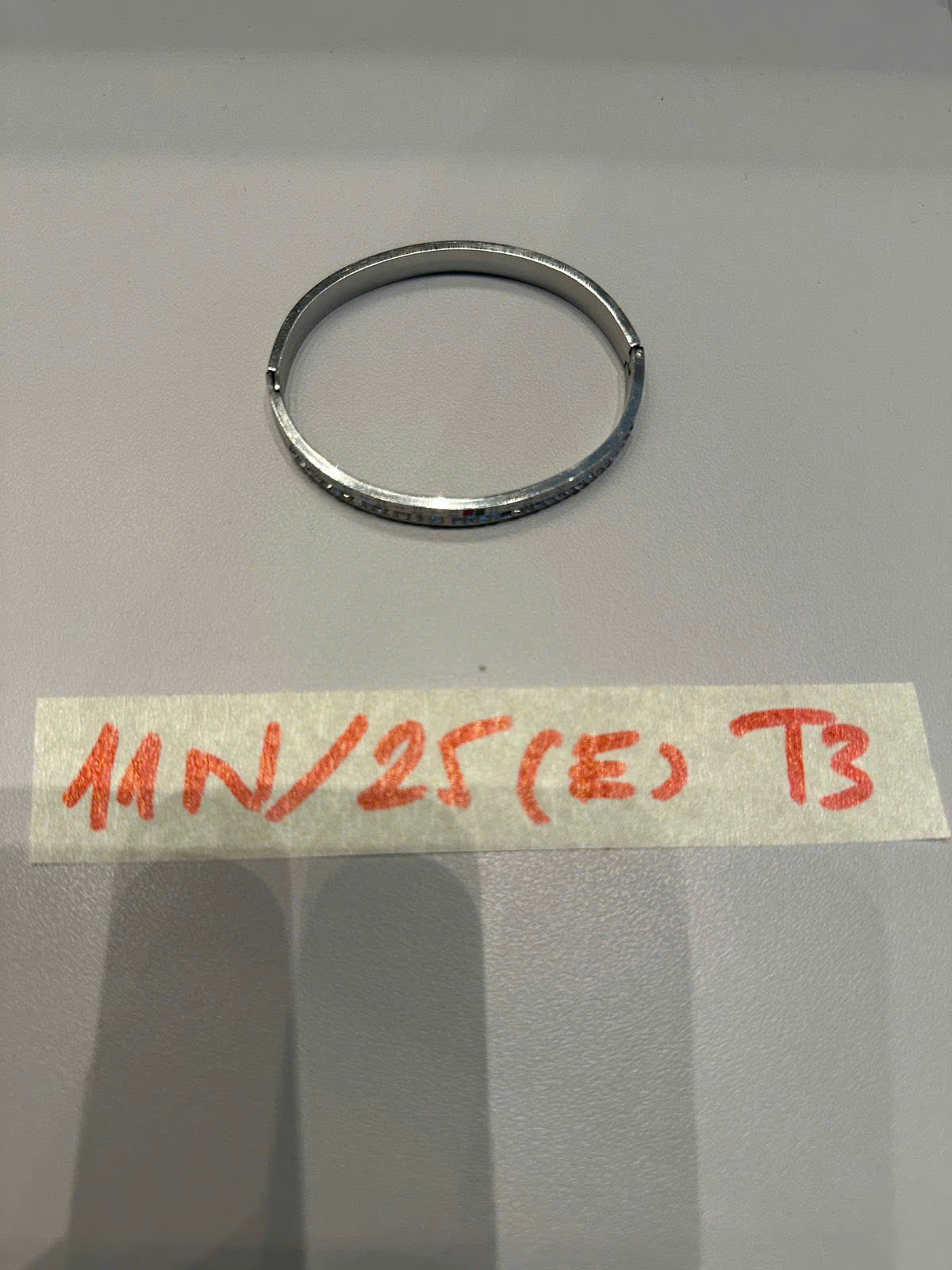 Ngày tiếp nhận: 29/8/2025 Mã hồ sơ: 11N2025E Mô tả: 01 vòng tay kim loại màu bạc. |