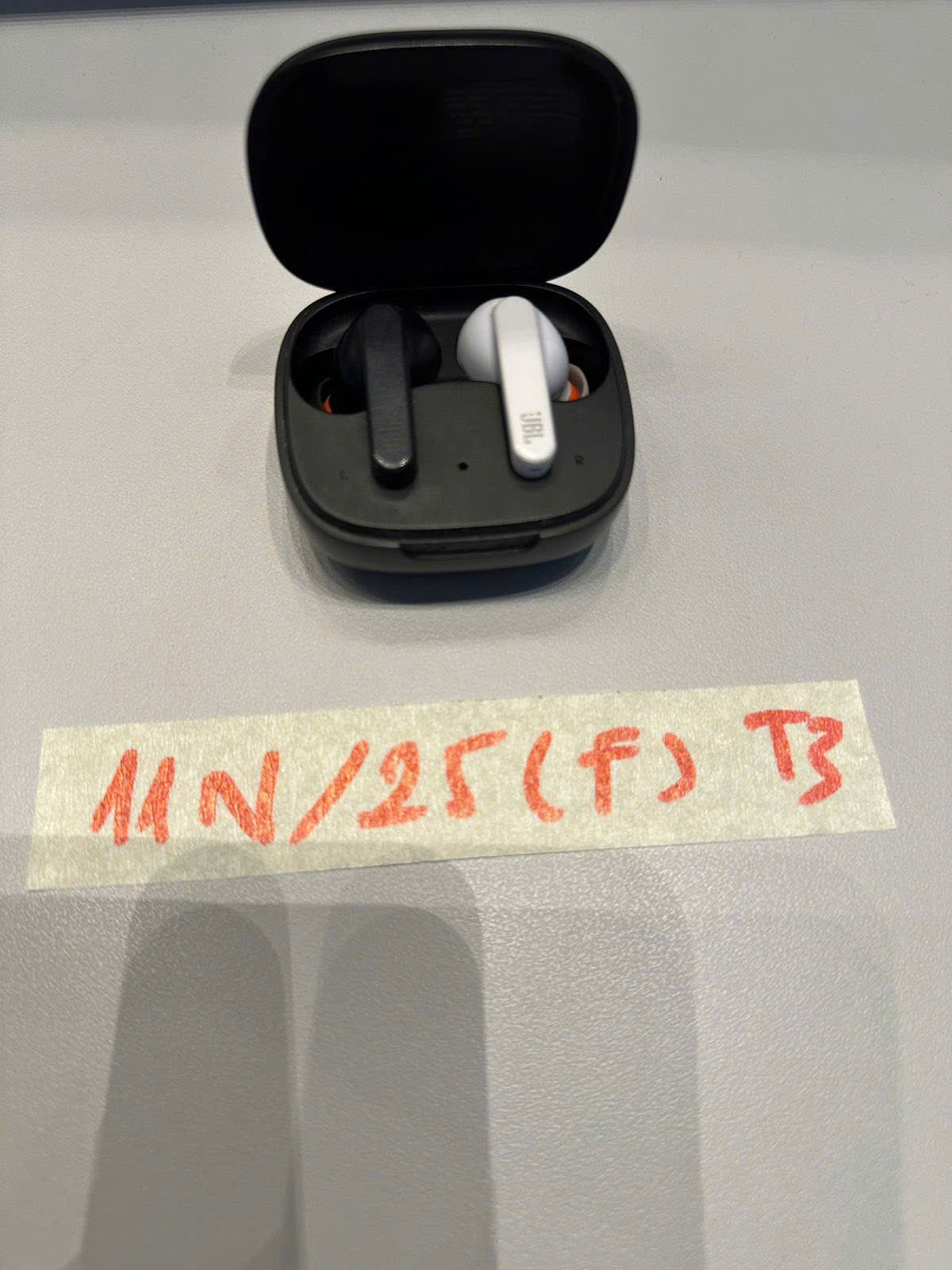 Ngày tiếp nhận: 29/8/2025 Mã hồ sơ: 11N2025F Mô tả: 01 tai nghe màu đen JBL. |