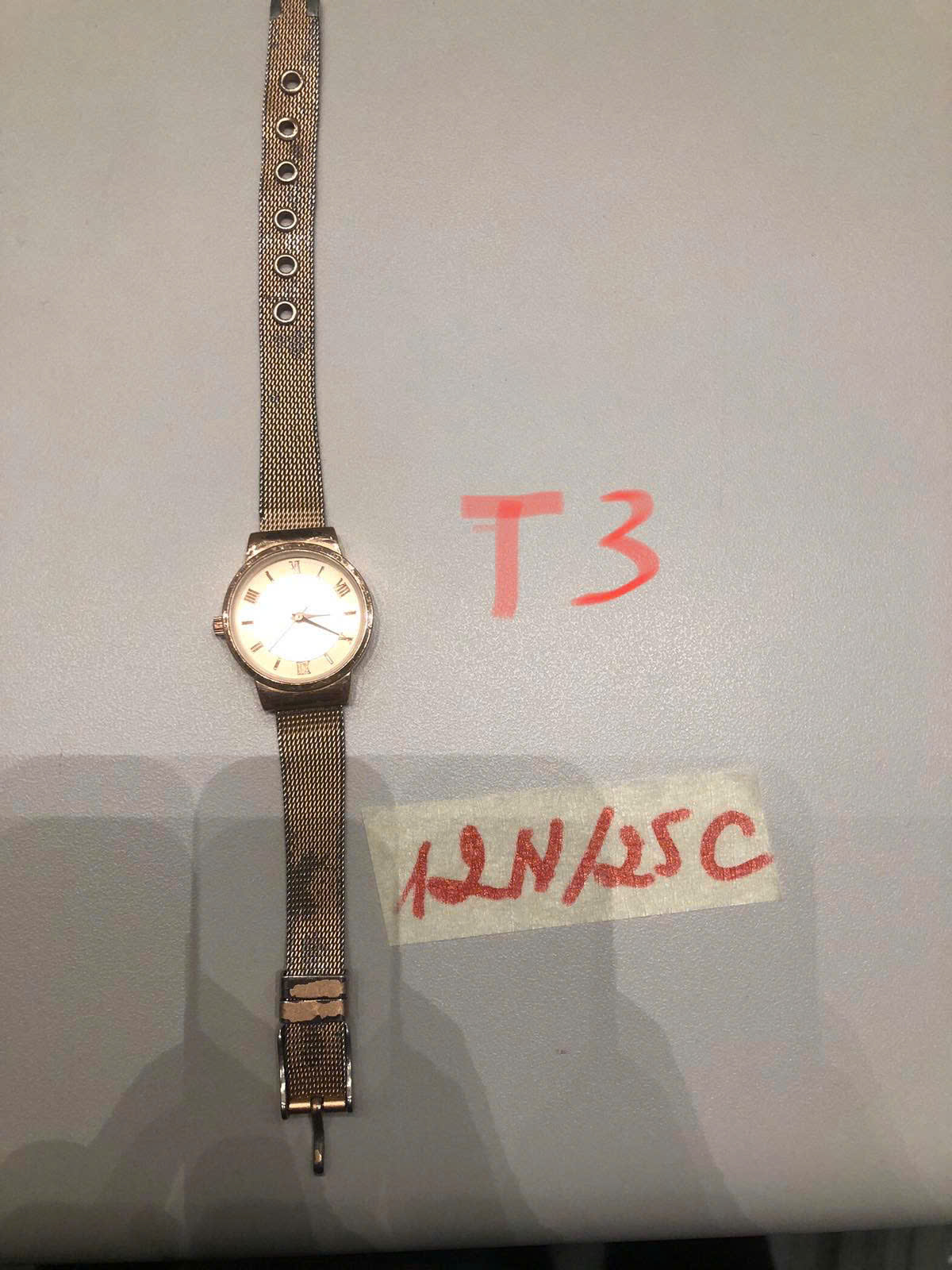 Ngày tiếp nhận: 29/8/2025 Mã hồ sơ: 12N2025C Mô tả: 01 đồng hồ nữ màu hồng, dây kim loại. |