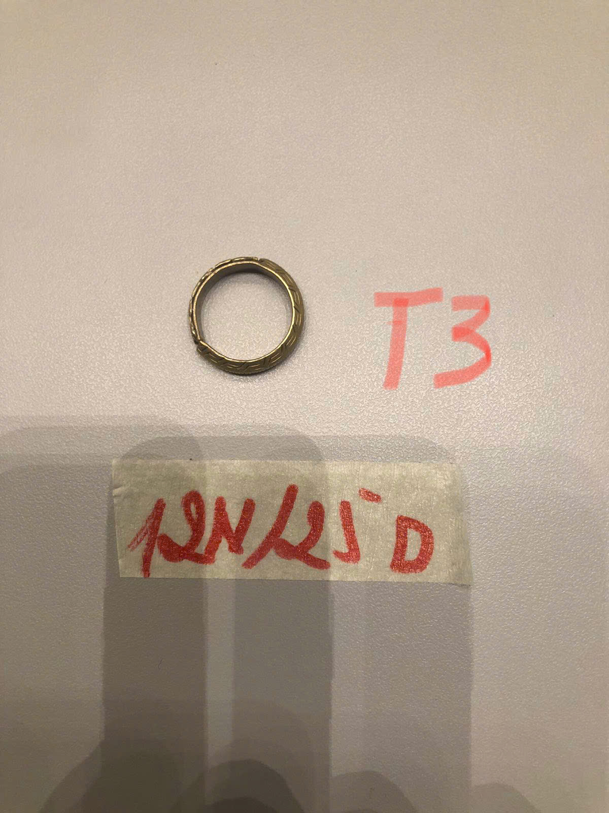 Ngày tiếp nhận: 01/9/2025 Mã hồ sơ: 15N2025 Mô tả: 01 vòng kim loại màu vàng đã qua sử dụng. |