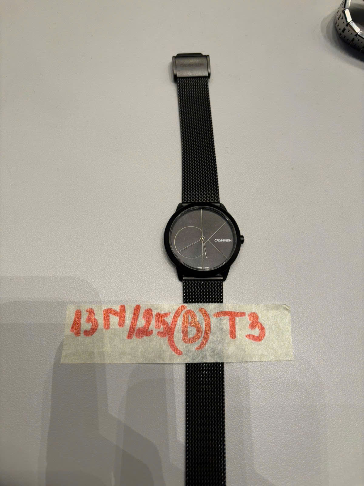 Ngày tiếp nhận: 30/8/2025 Mã hồ sơ: 13N2025B Mô tả: 01 đồng hồ màu đen có chữ "CALVIN KLEIN". |