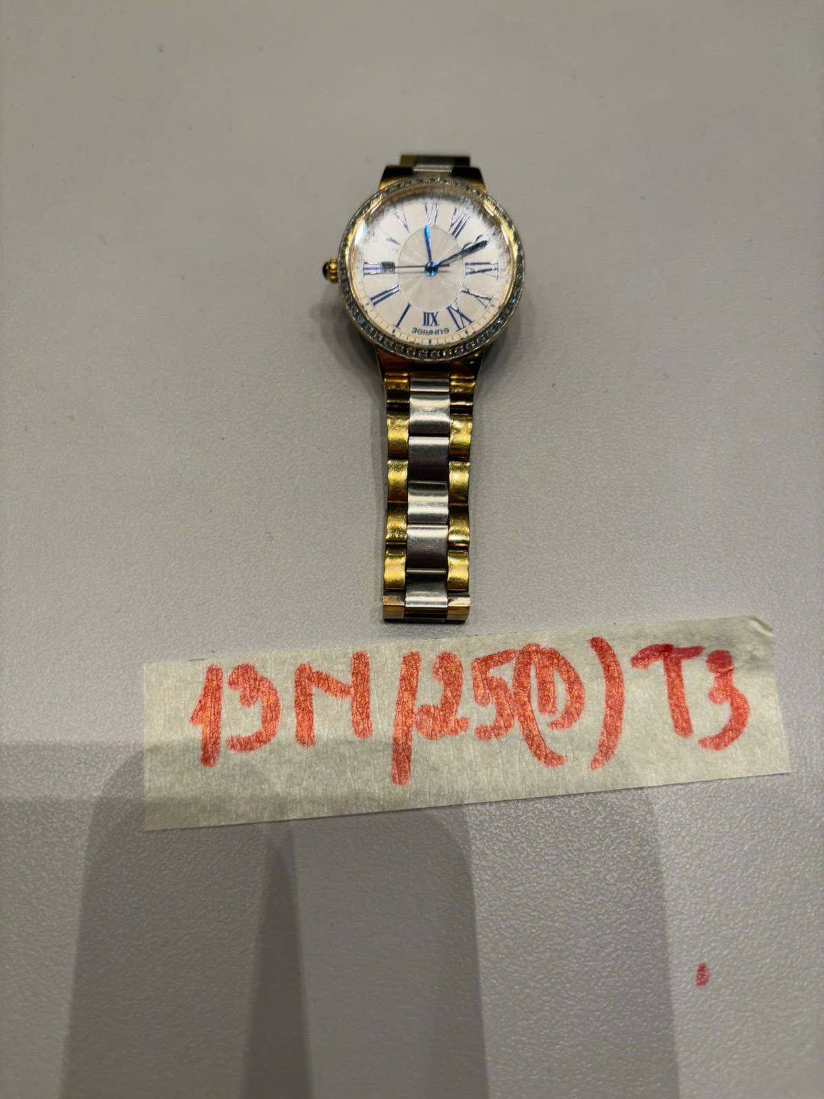 Ngày tiếp nhận: 31/8/2025 Mã hồ sơ: 14N2025D Mô tả: 01 đồng hồ nữ có đính đá DAVENA. |