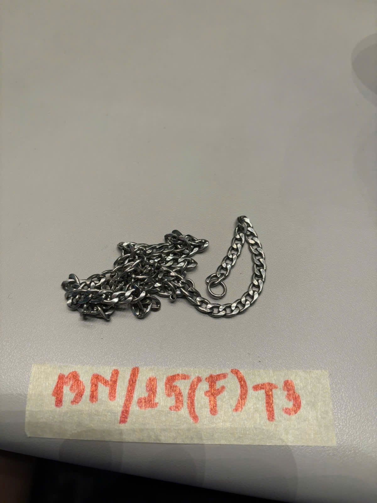 Ngày tiếp nhận: 30/8/2025 Mã hồ sơ: 13N2025F Mô tả: 01 dây kim loại màu trắng. |