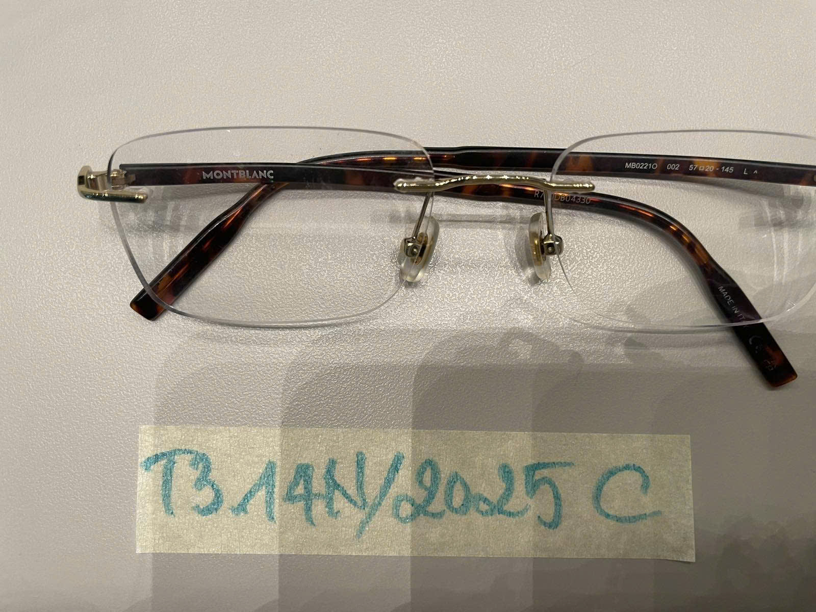 Ngày tiếp nhận: 31/8/2025 Mã hồ sơ: 14N2025C Mô tả: 01 mắt kính nam tròng trắng có chữ MONTBLANC. |