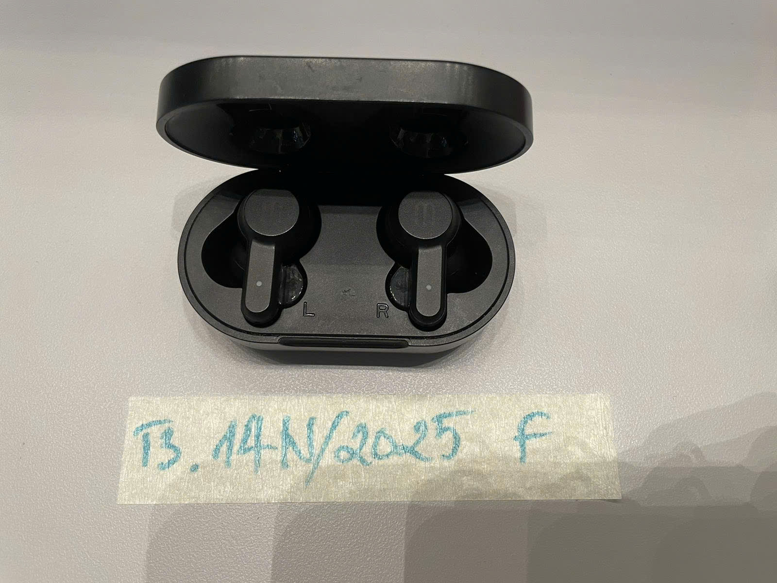 Ngày tiếp nhận: 31/8/2025 Mã hồ sơ: 14N2025F Mô tả: 01 hộp 02 tai nghe màu đen không dây không rõ hiệu có chữ M. |