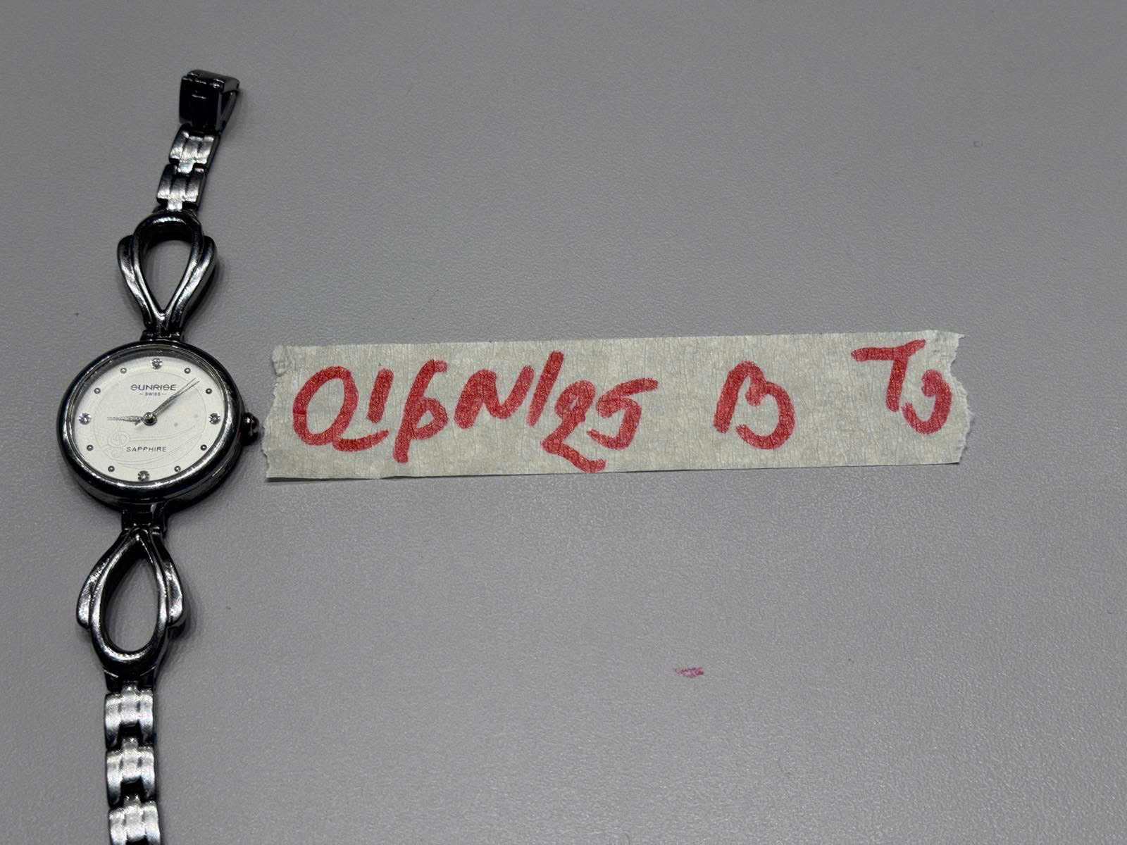 Ngày tiếp nhận: 02/9/2025 Mã hồ sơ: 16N2025B Mô tả: 01 đồng hồ kim loại màu bạc , dây kim loại có ghi chữ "SUNRISE SAPPHIRE" đã qua sử dụng. |