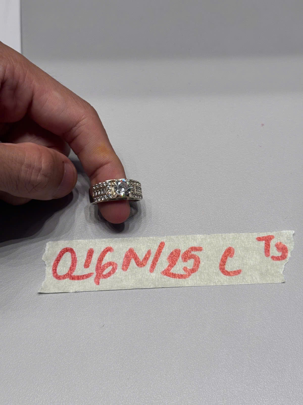 Ngày tiếp nhận: 02/9/2025 Mã hồ sơ: 16N2025C Mô tả: 01 chiếc nhẫn bằng kim loại có màu trắng bạc, trên mặt nhẫn có đính 1 viên đá lớn, xung quanh có đính 24 viên đá nhỏ đã qua sử dụng. |