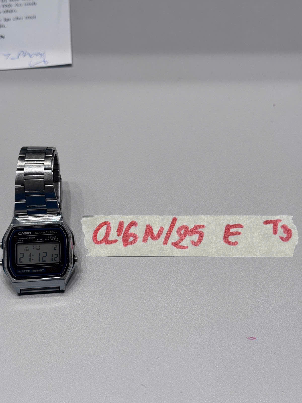 Ngày tiếp nhận: 02/9/2025 Mã hồ sơ: 16N2025E Mô tả: 01 đồng hồ kim loại màu bạc, mặt đồng hồ điện tử có chữ "CASIO" đã qua sử dụng. |