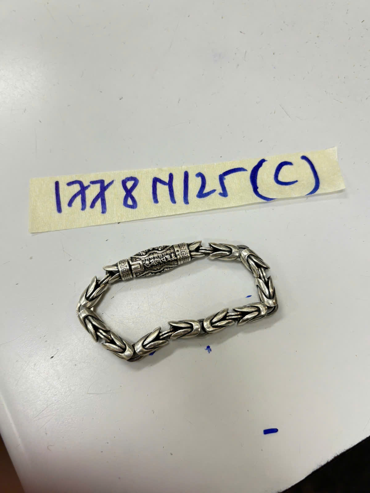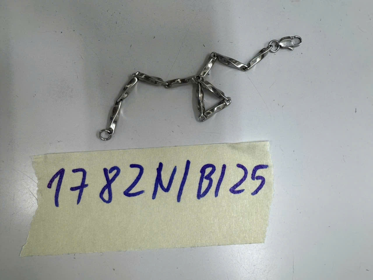 Ngày tiếp nhận: 30/9/2025 Mã hồ sơ: 1782N2025B Mô tả: 01 lắc tay bằng kim loại màu trắng không rõ thương hiệu. |